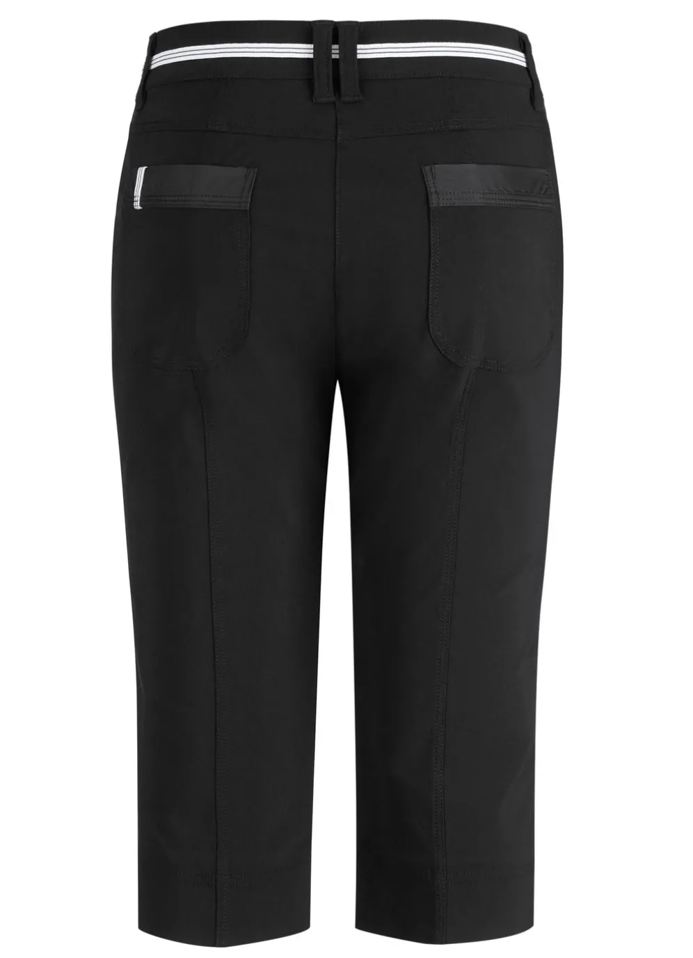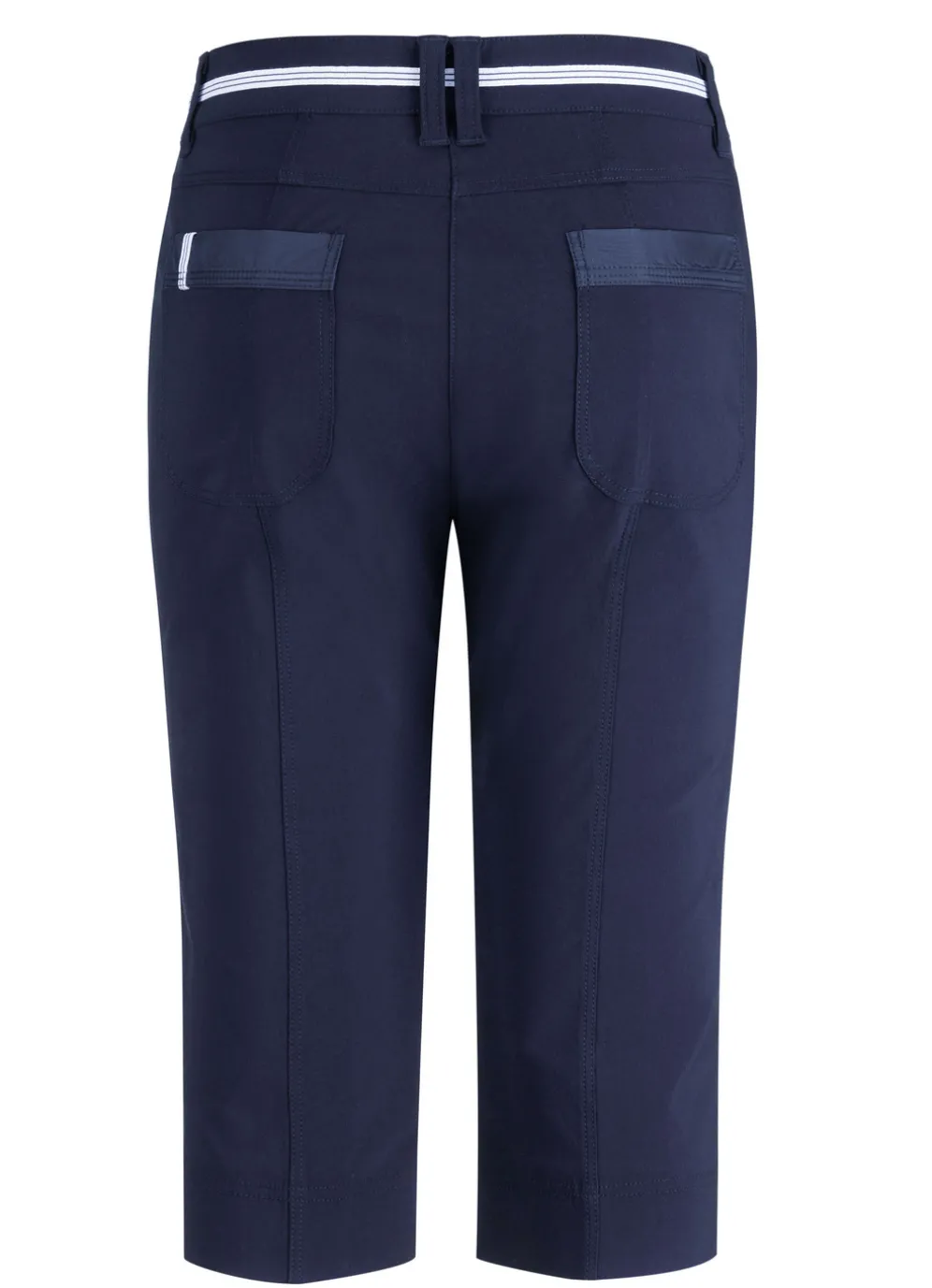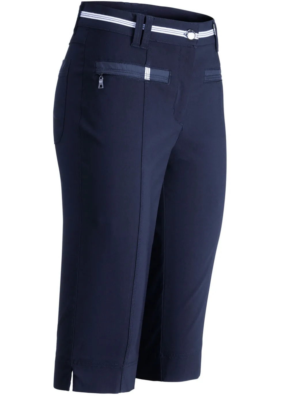 Unsere aufwendig gearbeitete Bermudas für die Freizeit: elastischer Bund mit kontrastfarbenem Zierband, Knopf- und Reißverschluss, paspelierte Seitentaschen mit Reißverschluss, Gesäßtaschen, Passe im Rückteil sowie figurgünstige, abgesteppte Teilungsnähte im Vorder- und Rückteil. Innenbeinlänge ca. 41 cm