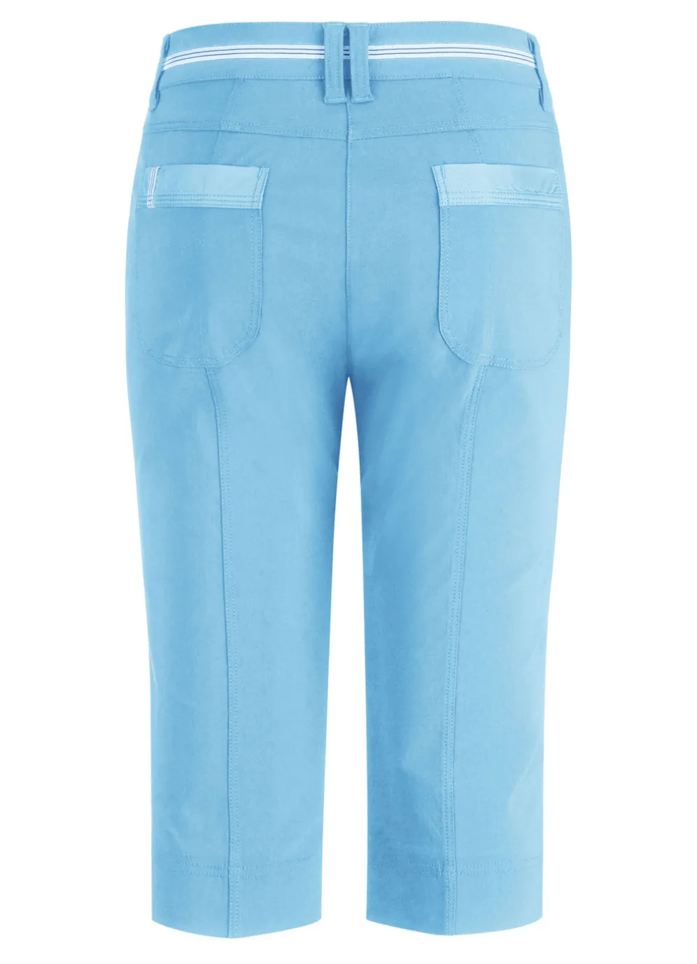 Aufwendig gearbeitete Bermudas in Türkis und in Größe 36.