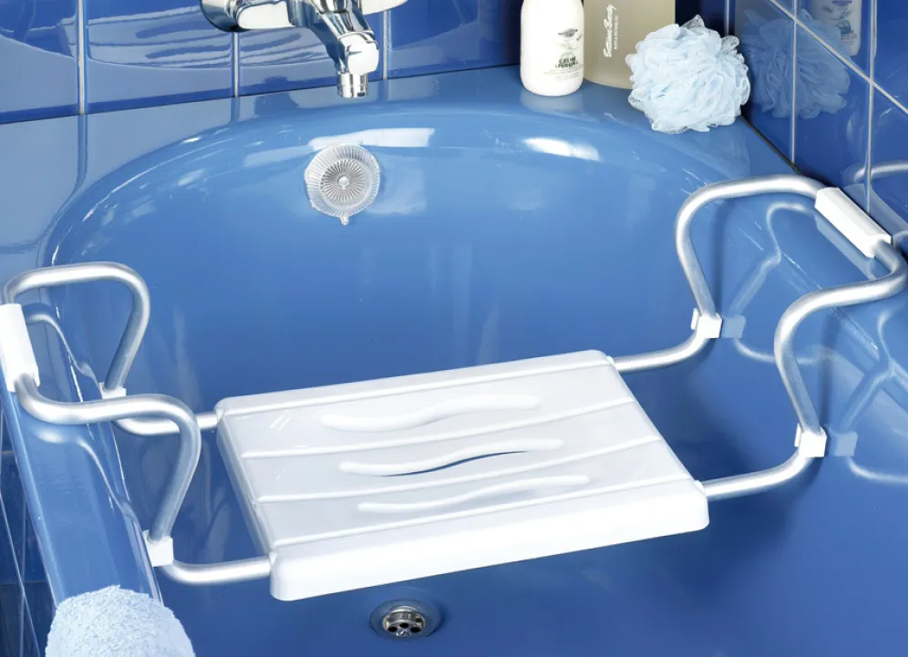 Hängen Sie den Sitz einfach mit dem Gestell aus stabilem Aluminium am Badewannenrand ein. Bequeme Sitzfläche aus Kunststoff. Eine optimale Hilfe auch für Teilbäder.