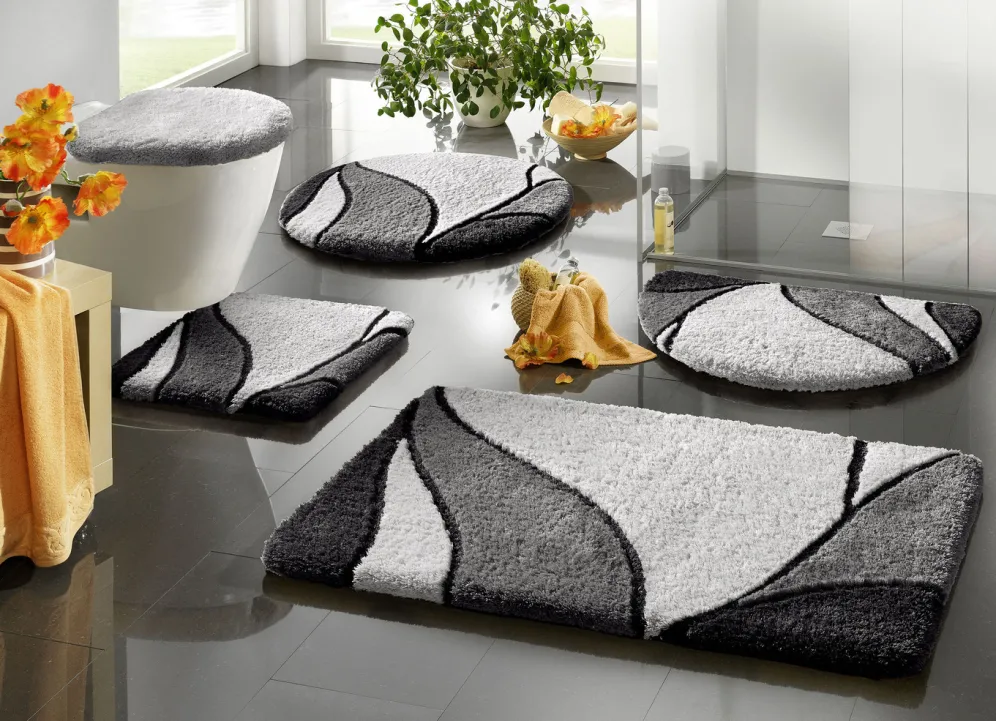 Geschmackvoll dessinierte Badgarnitur, die für eine tolle Atmosphäre in Ihrer Wellness-Oase sorgt! Höhe 20 mm. Mit rutschhemmender Latex-Rückseite gefertigt. Qualität: Table Tuft aus 90% Polyester und 10% Polyacryl. Waschbar bis 40 °C sowie für Fußbodenheizung geeignet.