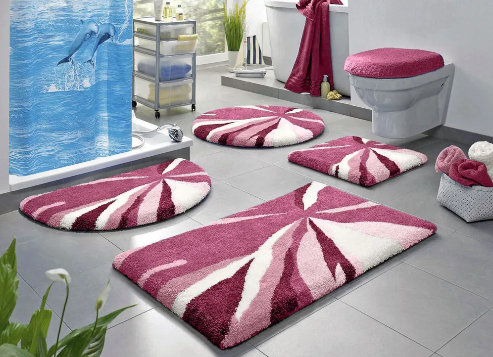 | Size | 100 (Vorleger halbrund, 50/ 80 cm), 101 (Teppich, 50/ 80 cm), 102 (Teppich, 60/100 cm), 104 (Teppich, 70/120 cm), 105 (Teppich, 80/140 cm), 106 (Teppich rund, ø 80 cm), 107 (Teppich, 90/ 90 cm), 108 (Stand-WC-Vorleger, 50/ 50 cm) |