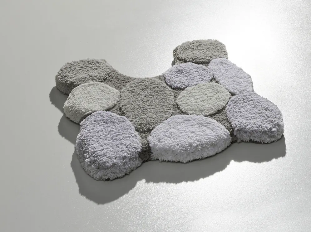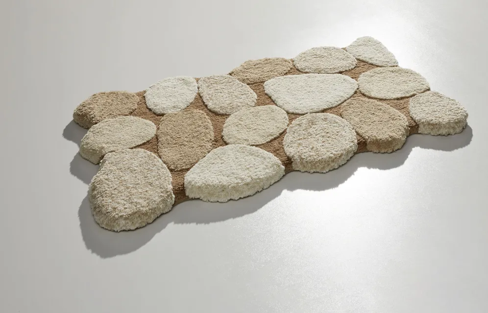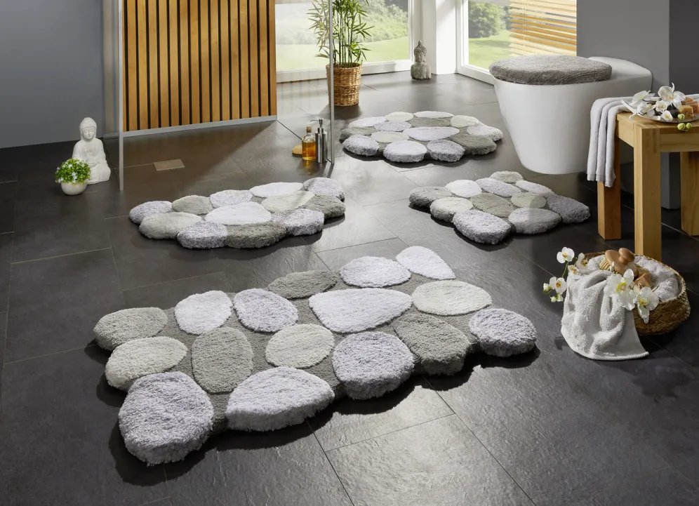 Auf dieser barfußweichen Badgarnitur zeigen sich naturgetreu dargestellte Steine, die durch die aufwendige Hoch-Tief-Struktur besonders schön zur Geltung kommen. Mit latexbeschichteter, rutschhemmender Rückseite. Höhe: ca. 25 mm.