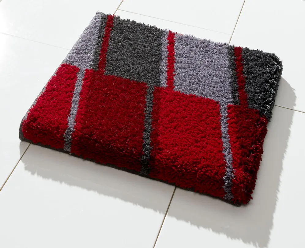 Mit ihrem grafischen Dessin in angenehmen Farbkombinationen weiß diese barfußweiche Badgarnitur von „LineaDue“ zu gefallen. Mit rutschhemmend latexierter Rückseite. Höhe: 20 mm. Die Qualität: CT-Tufting aus 100% Polyacryl „Supersoft“. Waschbar bis 40 °C sowie für Trockner und Fußbodenheizung geeignet.