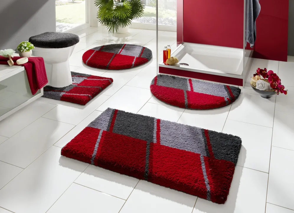 | Size | 100 (Vorleger halbrund, 50/ 80 cm), 101 (Teppich, 50/ 80 cm), 102 (Teppich, 60/100 cm), 104 (Teppich, 70/120 cm), 105 (Teppich, 80/140 cm), 106 (Teppich rund, ø 80 cm), 108 (Stand-WC-Vorleger, 50/ 50 cm), 109 (Hänge-WC-Vorleger, 50/ 50 cm) |