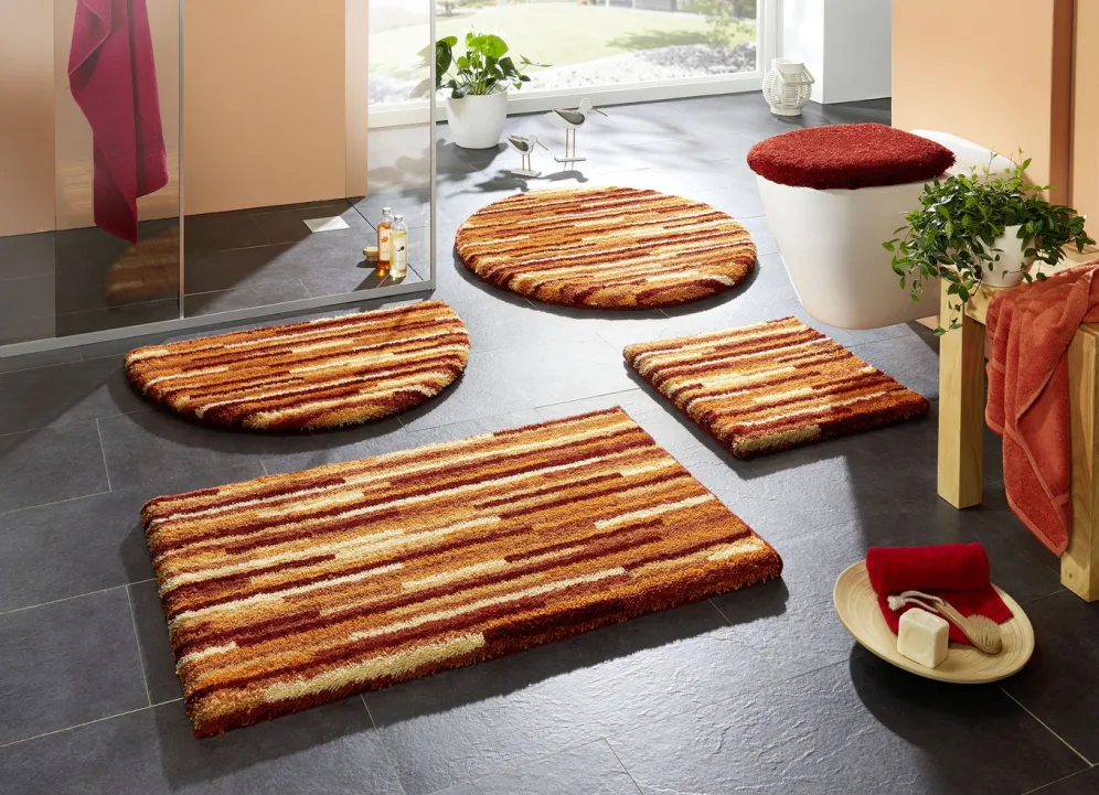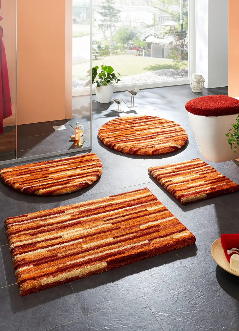 | Size | 100 (Vorleger halbrund, 50/ 80 cm), 101 (Teppich, 50/ 80 cm), 102 (Teppich, 60/100 cm), 104 (Teppich, 70/120 cm), 105 (Teppich, 80/140 cm), 106 (Teppich rund, ø 80 cm), 108 (Stand-WC-Vorleger, 50/ 50 cm), 109 (Hänge-WC-Vorleger, 50/ 50 cm) |