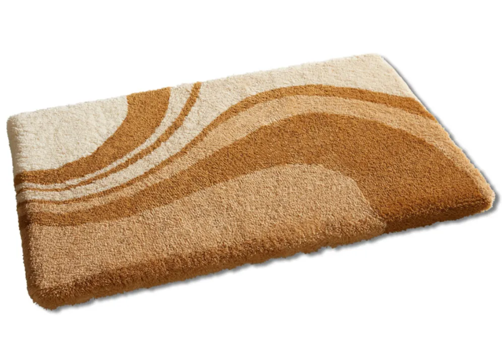 Badgarnitur von Kleine Wolke mit rutschhemmender Rückseite in Größe 100 (Vorleger halbrund, 50/ 80 cm) und in Beige.