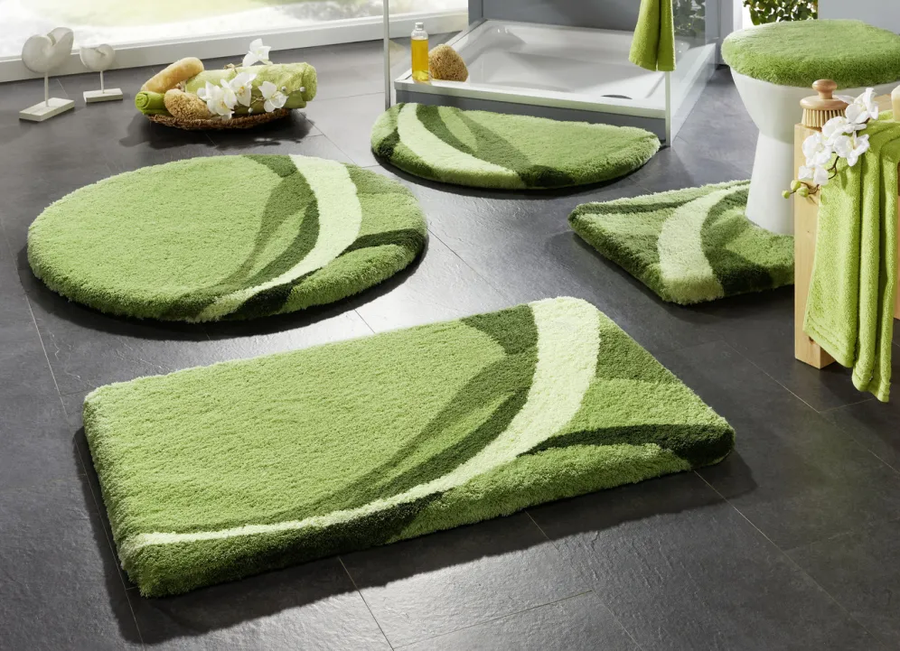 | Size | 100 (Vorleger halbrund, 50/ 80 cm), 101 (Teppich, 50/ 90 cm), 102 (Teppich, 60/100 cm), 103 (Teppich, 70/120 cm), 104 (Teppich rund, Ø 90 cm), 108 (Stand-WC-Vorleger, 50/ 55 cm), 109 (Hänge-WC-Vorleger, 50/ 55 cm), 112 (WC-Deckelbezug, 47/ 50 cm) |