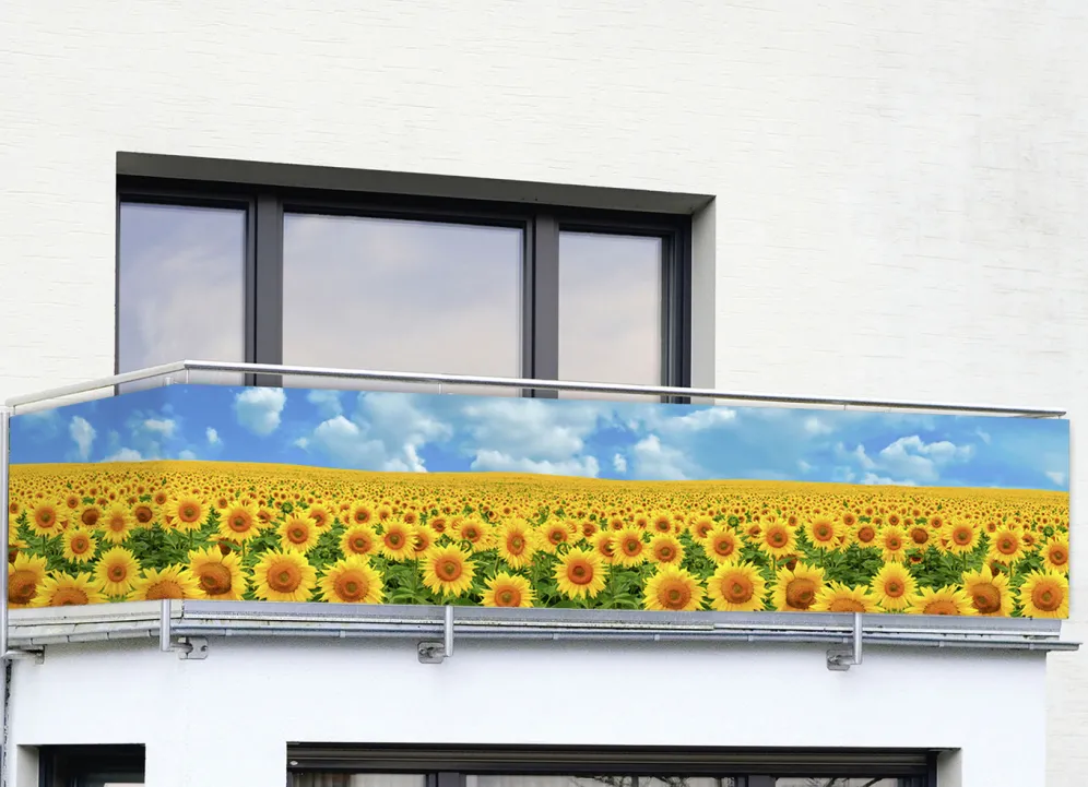 Balkonsichtschutz mit Sonnenblumen-Motiv