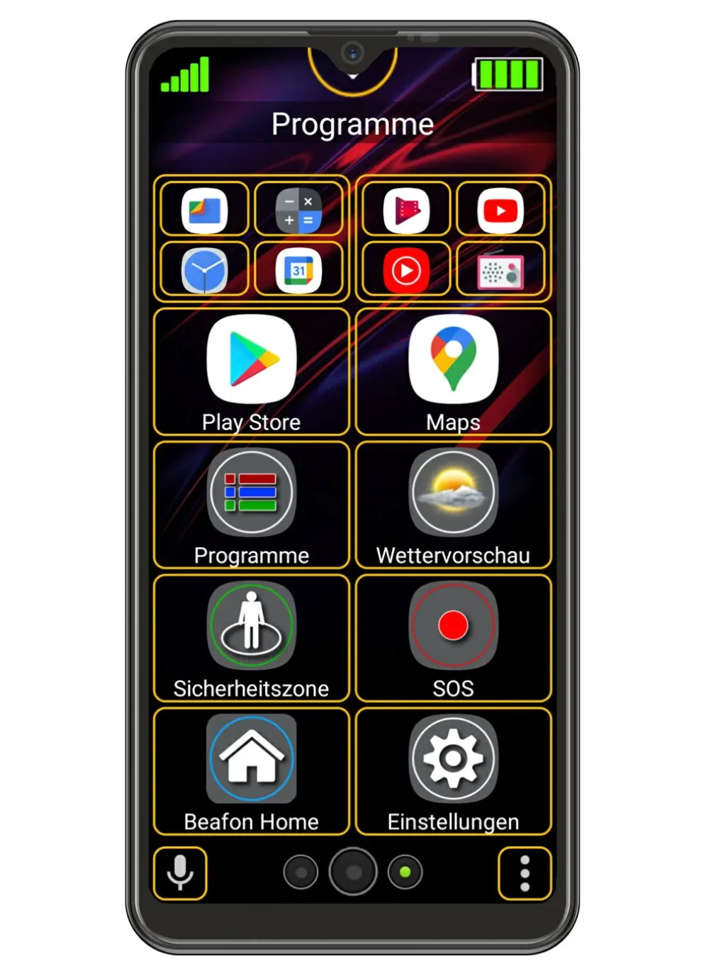 „bea-fon“ M 6s premium Smartphone mit 6,3″ (15,90 cm) HD+-Display. Durch eine wechselbare Oberfläche von Betriebssystem Android 10 zur Bea-fon leicht zu bedienenden Benutzeroberfläche können Sie beide Oberflächen nach Ihren persönlichen Bedürfnissen anpassen.
