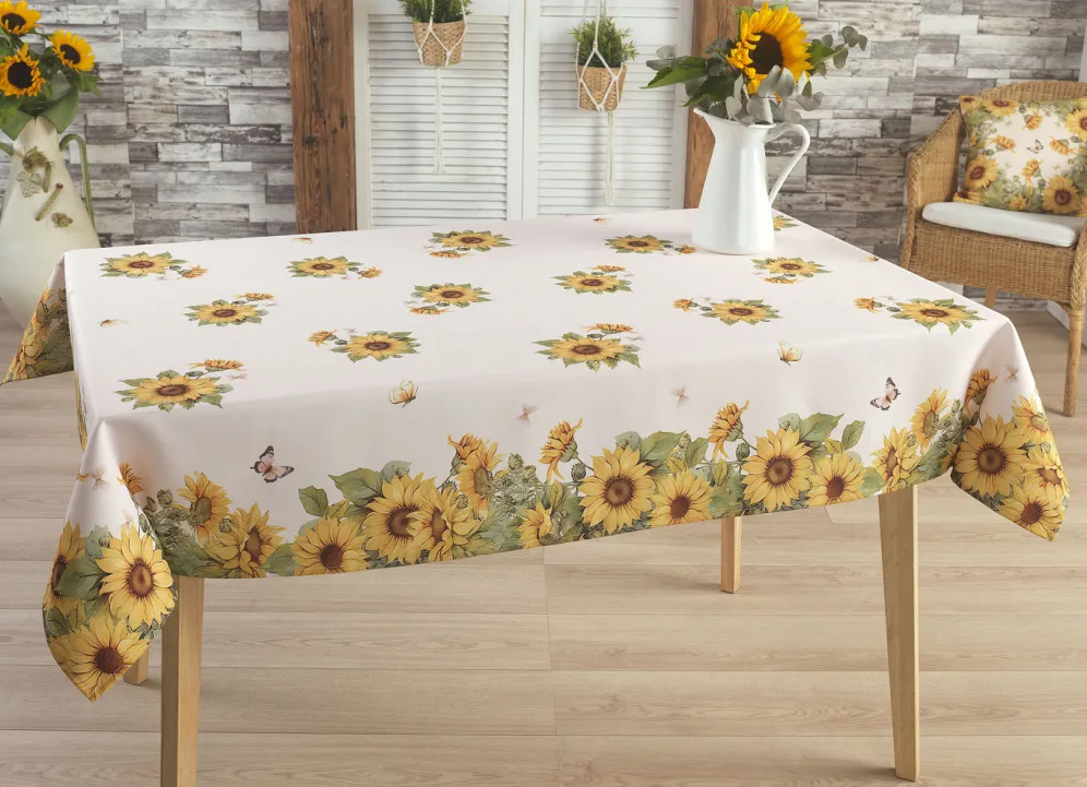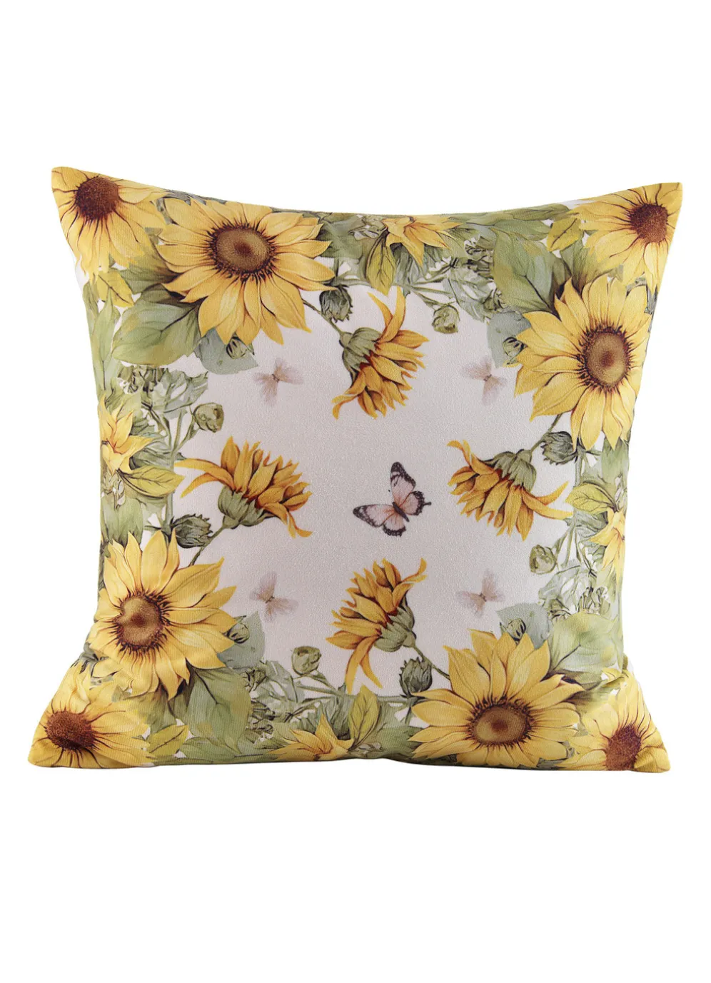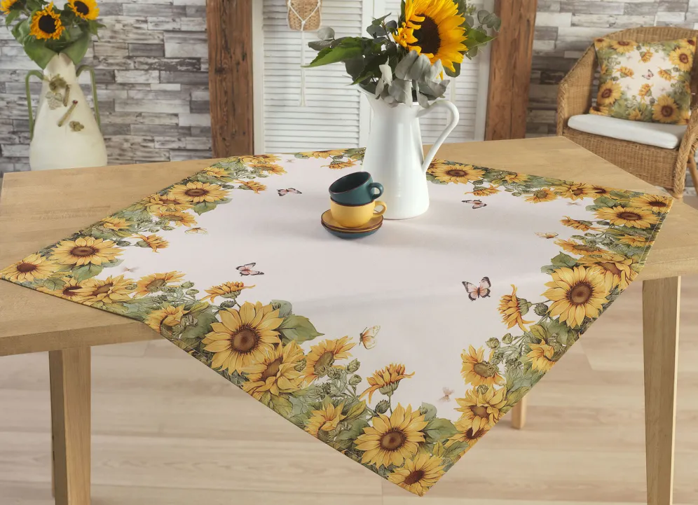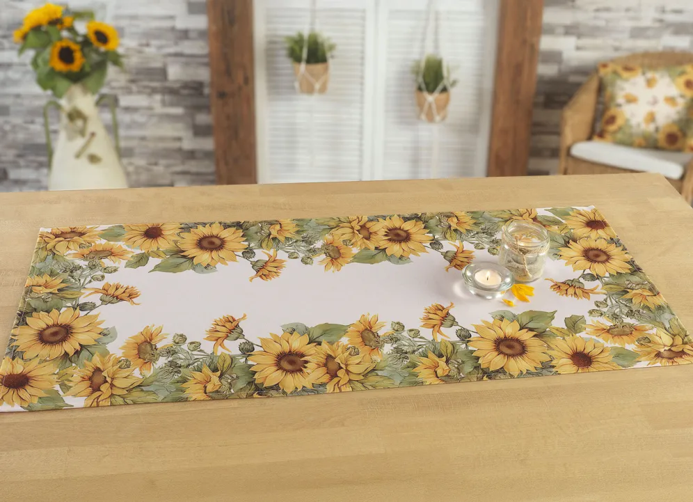 Diese bedruckte Tisch- und Raumdekoration bringt mit ihren leuchtenden Sonnenblumen pure Lebensfreude in Ihre vier Wände. Kissenbezug mit praktischem Reißverschluss. Qualität: 100% Polyester. Waschbar bis 30 °C.