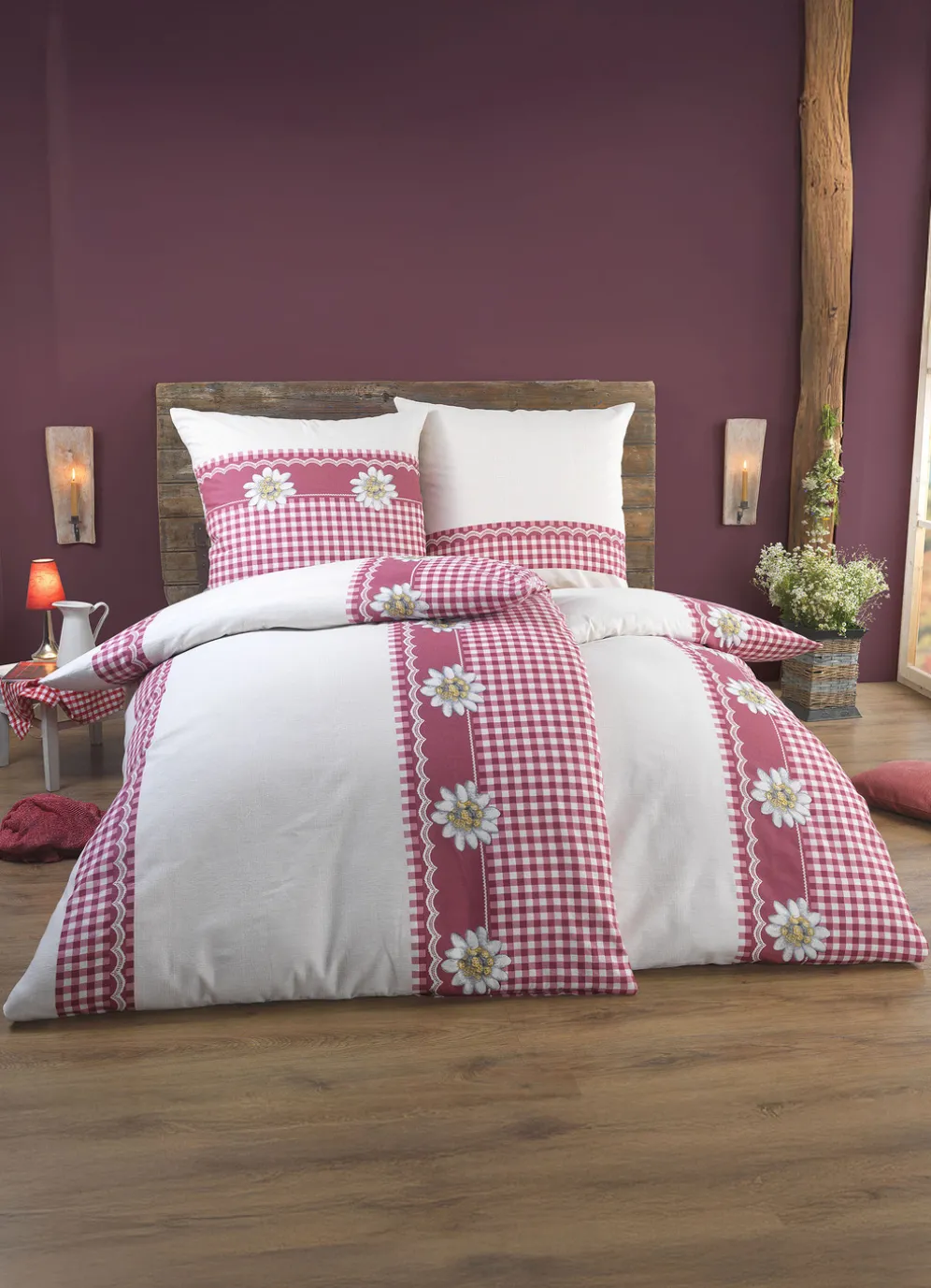 Beidseitig bedruckte Bettwäsche-Garnitur im Landhausstil
