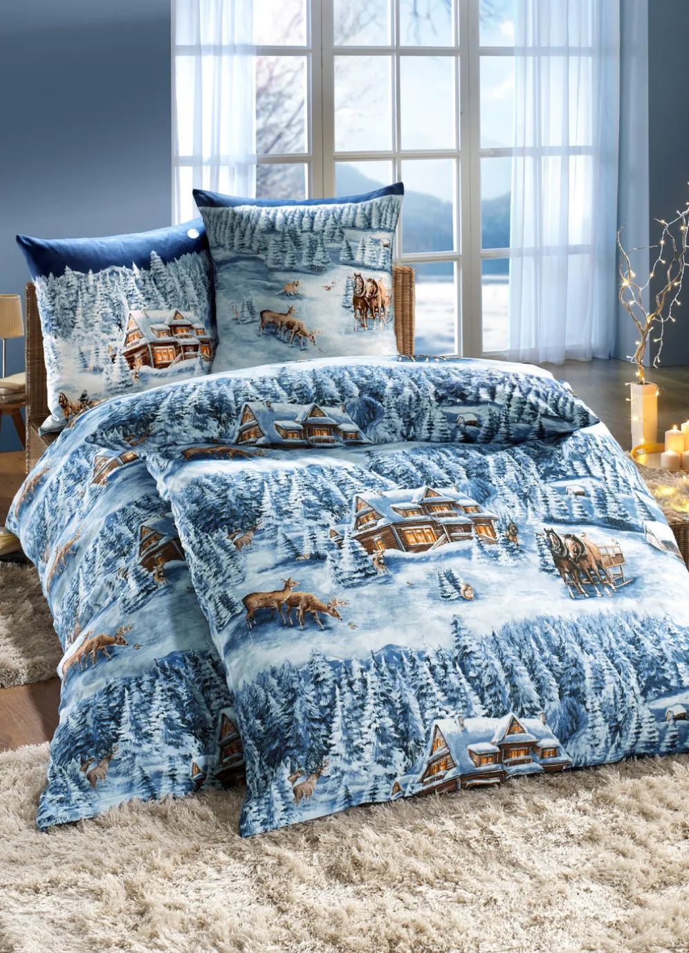 Mit einer wundervoll verschneiten Winterlandschaft und naturgetreuen Waldbewohnern überzeugt diese beidseitig bedruckte Bettwäsche-Garnitur aus dem Hause „Dobnig“. Mit praktischem Reißverschluss ausgestattet. Die kuschelige Qualität: bügelleichter Biber aus 100% Baumwolle. Waschbar bis 60 °C