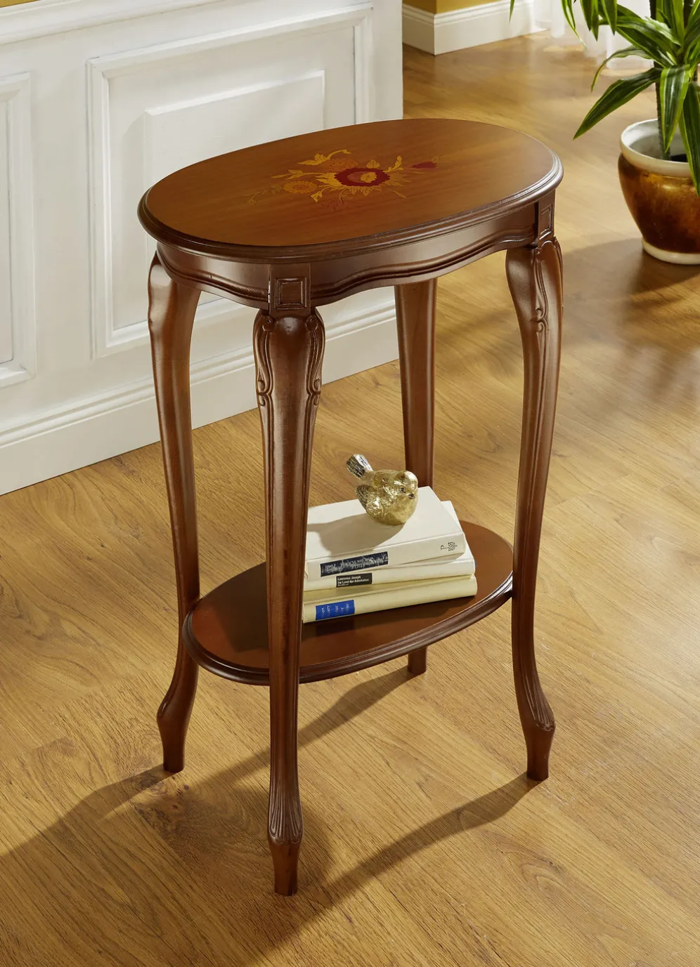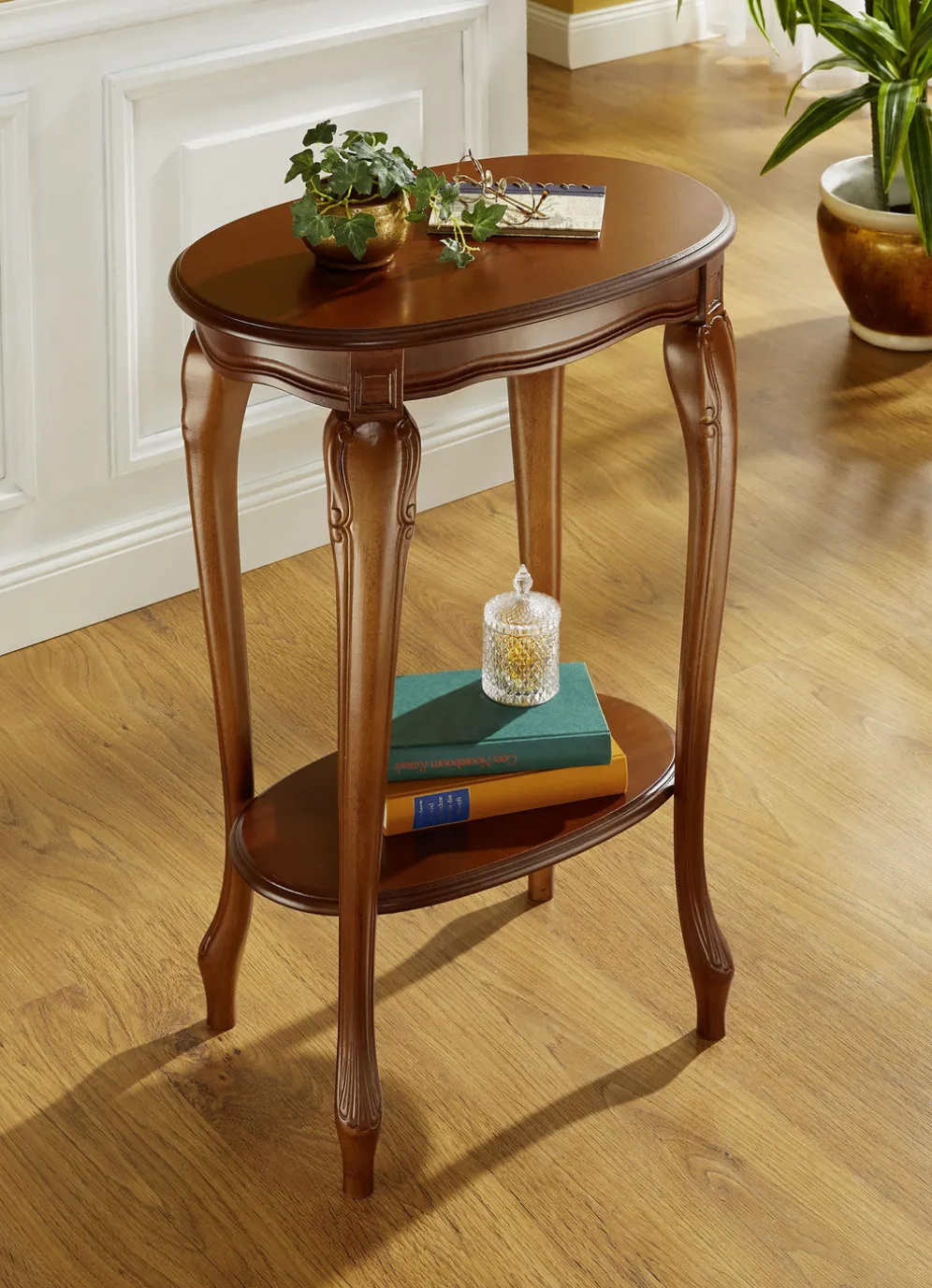 Ein kleines, italienisches Design-Highlight ist dieser teilmassive ovale Beistelltisch, den wir Ihnen wahlweise mit kunstvollen Intarsien in der Tischplatte anbieten. Mit praktischer Ablage. Maße: B53xH72,5xT34 cm. Die Lieferung erfolgt aufgebaut.