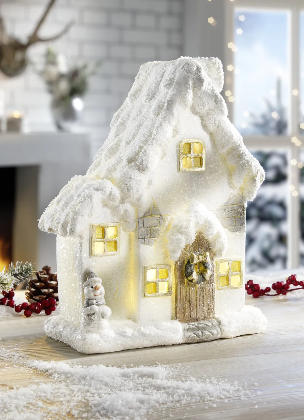 Verleihen Sie Ihrem Zuhause eine festliche Atmosphäre mit diesem charmanten, beleuchteten Häuschen aus hochwertigem Polyresin. In Weiß gehalten. Die integrierte LED-Beleuchtung bringt das Ganze wunderschön zum Strahlen. Batteriebetrieben mit 3x 1,5 Volt Micro (nicht im Lieferumfang enthalten). Maße: ca. B18xH24xT9 cm.