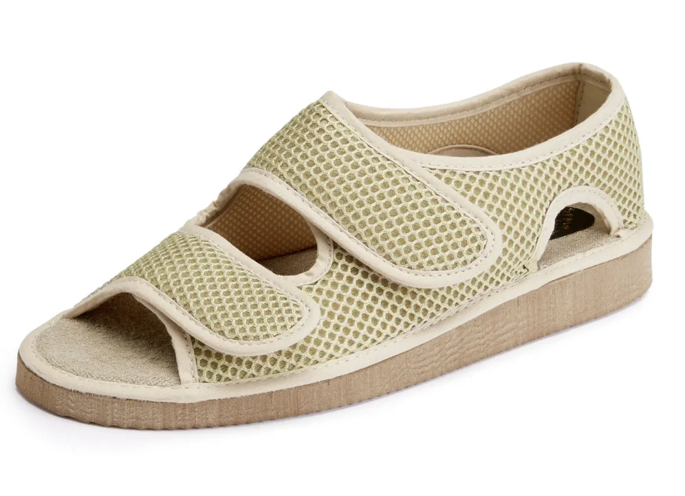 Superleichte Sandalen aus gepolstertem Textilmaterial: Weite H, Klettspange, Frottee-Decksohle, EVA-Riffelsohle, 10 mm Keilabsatz
