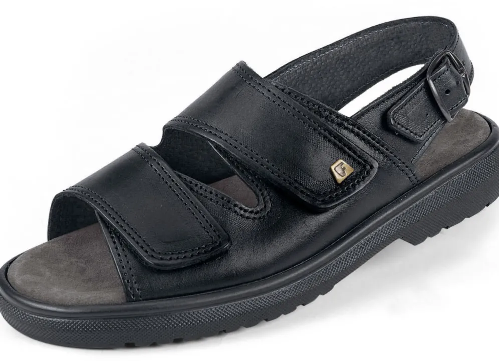 Sandalen aus bestem Kalb-Nappaleder, mit verstellbarem Fersenriemen und zwei Klettspangen: Weite K, Lederfutter, Lederbrandsohle, herausnehmbares Lederfußbett sowie leichte PU-Profilsohle