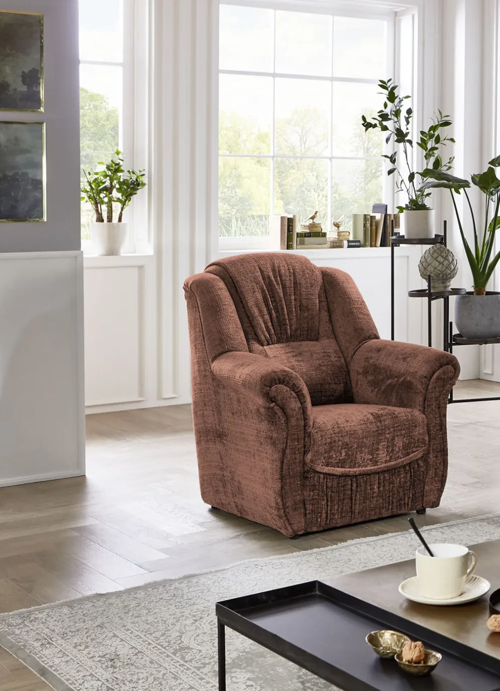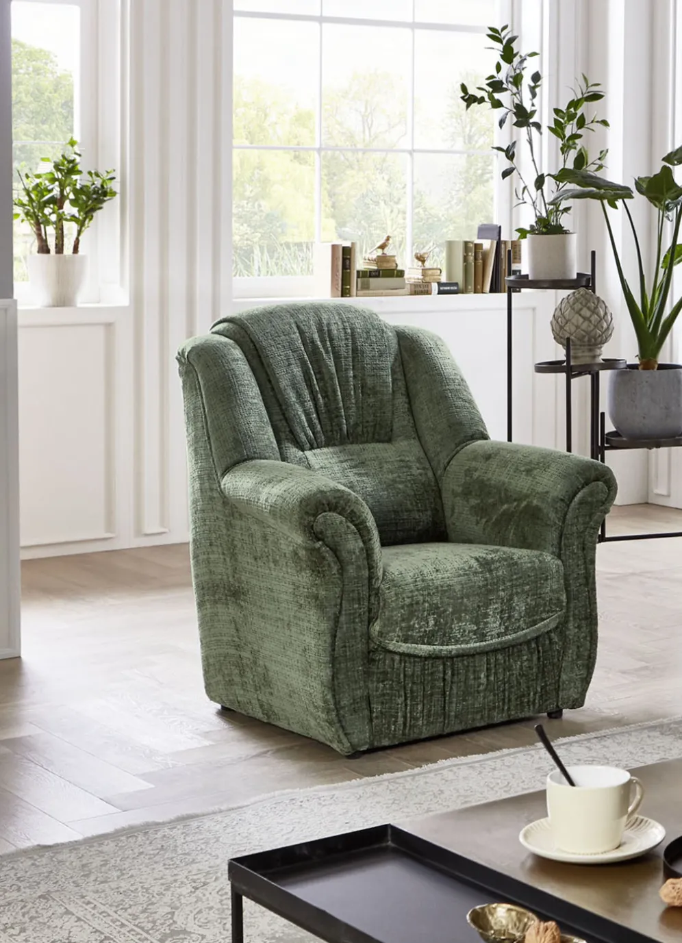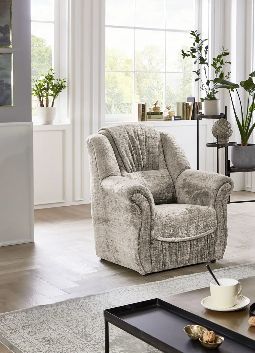 Bequeme Polstermöbel in der Ausführung Sessel und in Creme.