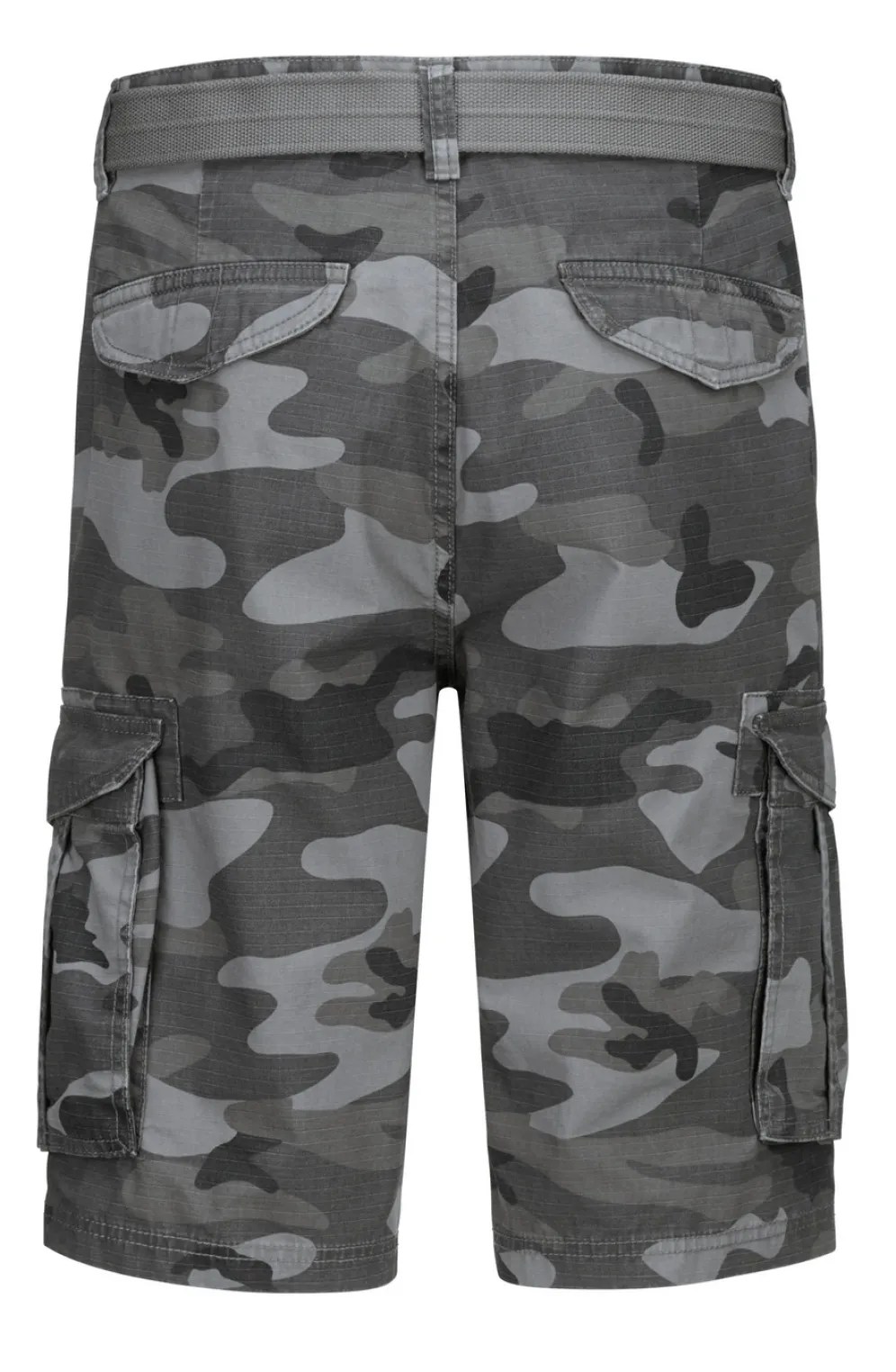 Im angesagten Camouflage-Look präsentiert sich diese markante Bermudas mit farblich passendem Stoffgürtel: Seitentaschen, aufgesetzte Cargotaschen mit Patte und Klettverschluss sowie Gesäßpattentaschen mit Klettverschluss.