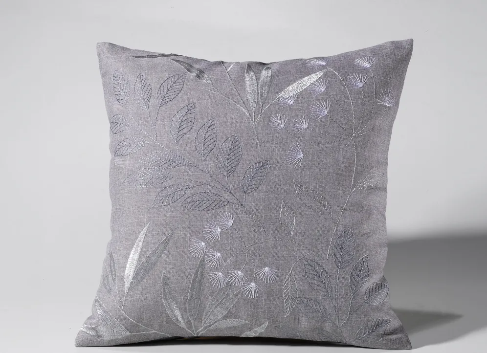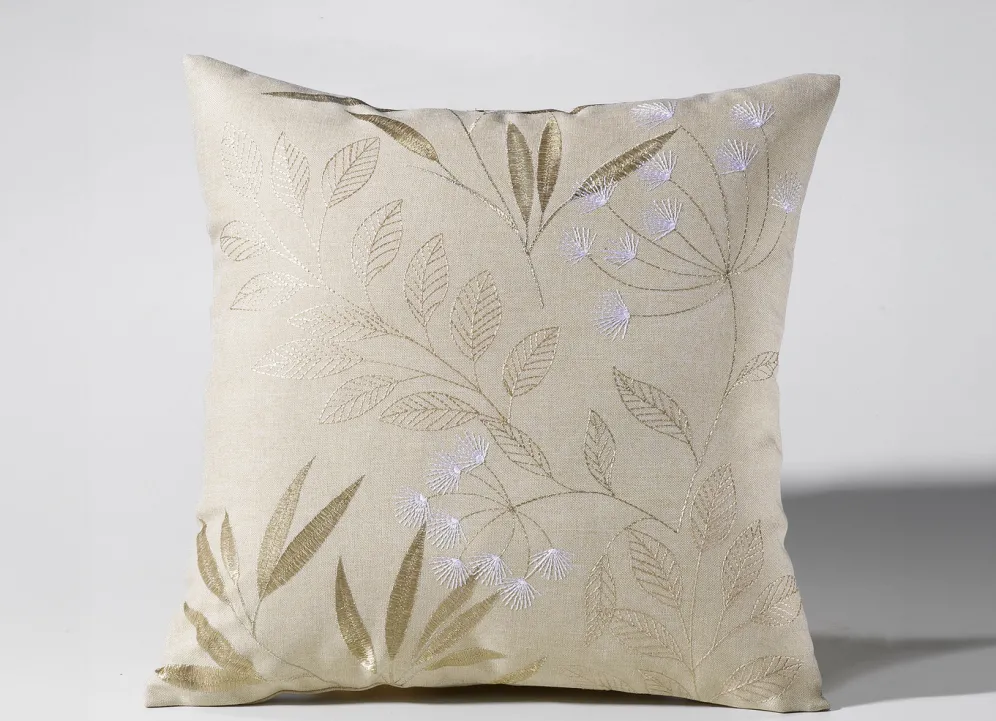 Das elegante und seidig glänzende Gräser- und Blätter-Dessin dieser wundervoll bestickten Tisch- und Raumdekoration zaubert ein frisches Flair in Ihren Wohnbereich! Kissenbezug mit Reißverschluss. Die Qualität: 100% Polyester. Waschbar bis 30 °C