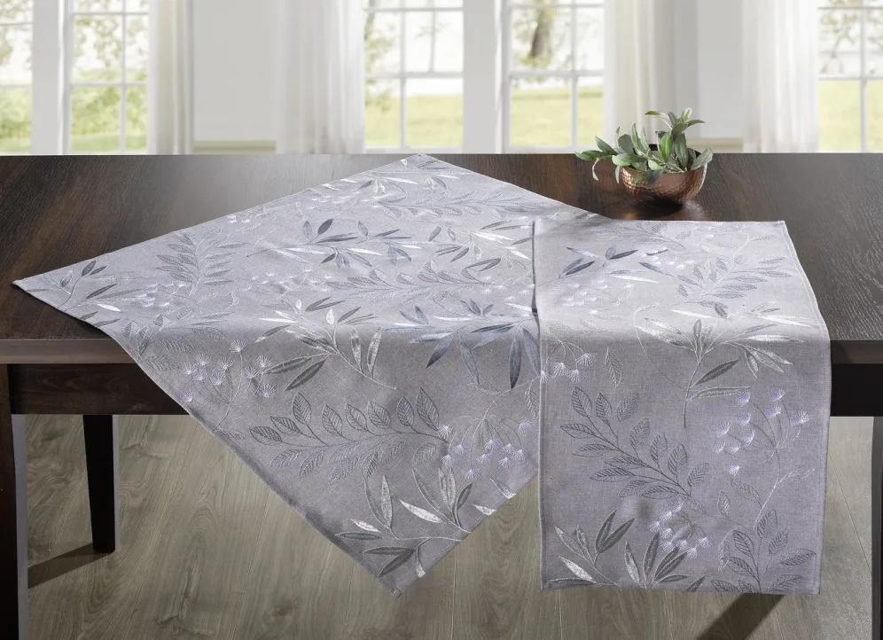 Bestickte Tisch- und Raumdekoration mit Gräser- und Blätter-Dessin