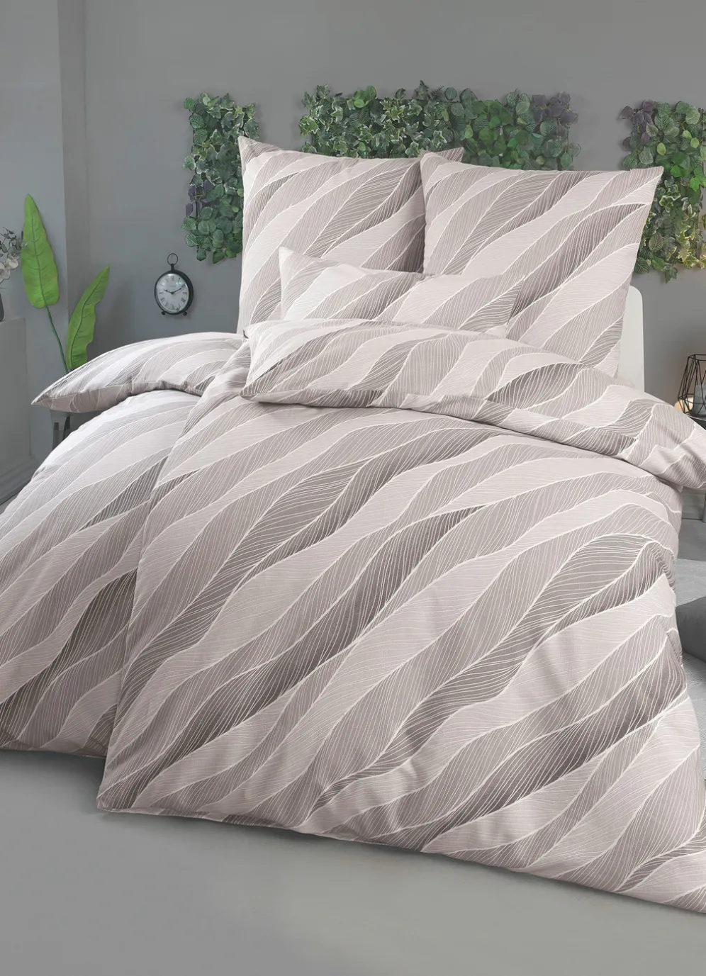 Bettwäsche-Garnitur in Flanell-Qualität in Größe 111 (40/80 cm + 135/200 cm) und in Braun.