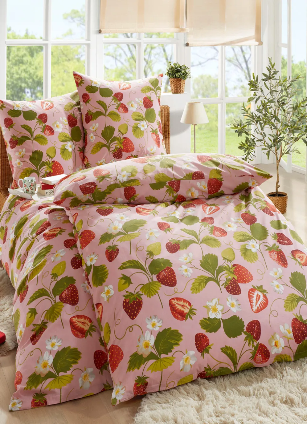 Bettwäsche-Garnitur mit Erdbeer-Motiv