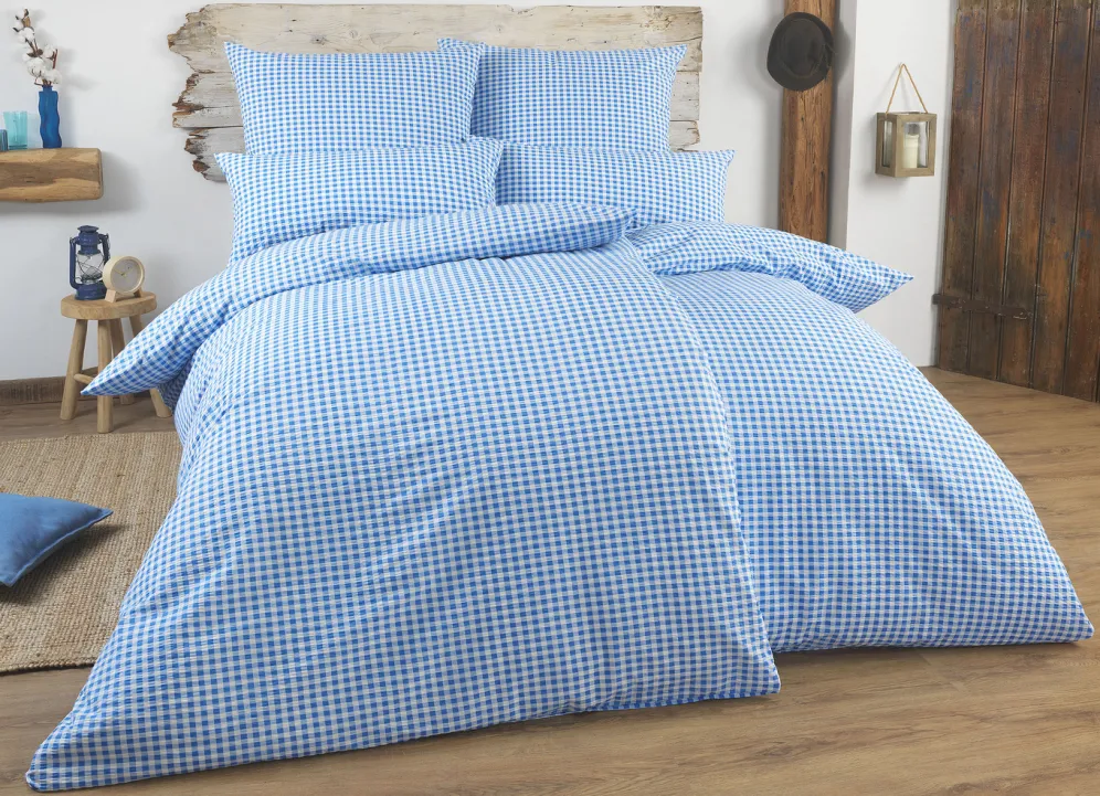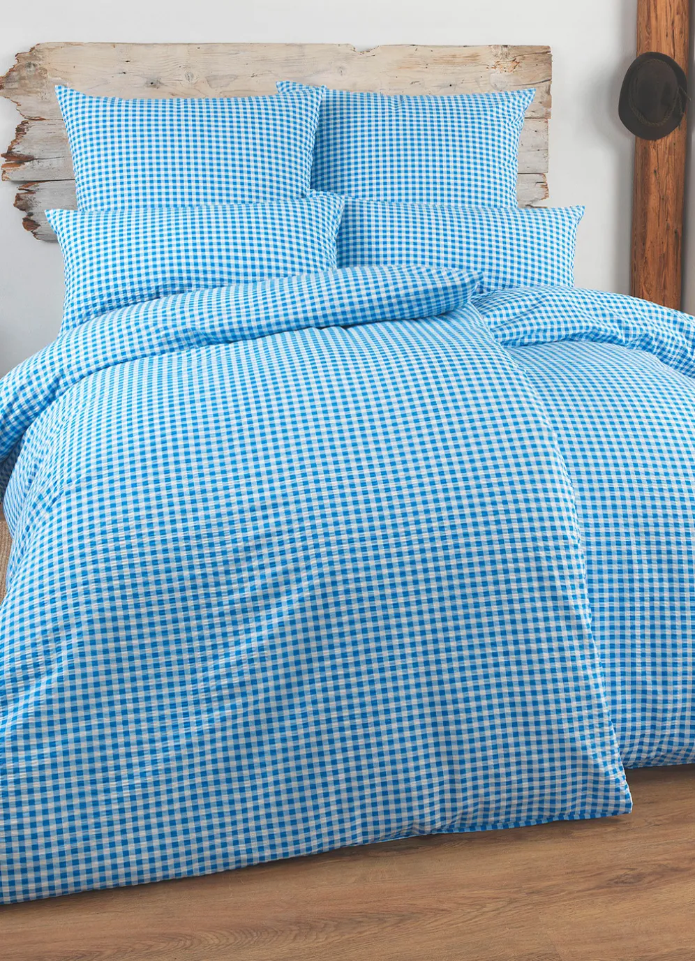 Diese klassisch karierte, beidseitig bedruckte Bettwäsche-Garnitur verbreitet Landhaus-Charme in Ihrem Schlafzimmer. Mit praktischem Reißverschluss. Die bügelfreie, hautsympathische Qualität: Soft-Seersucker aus 100% Baumwolle. Waschbar bis 60 °C und trocknergeeignet.