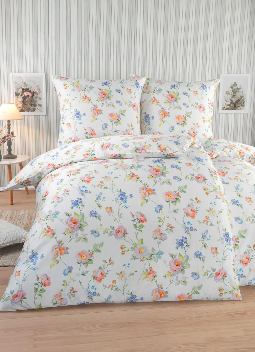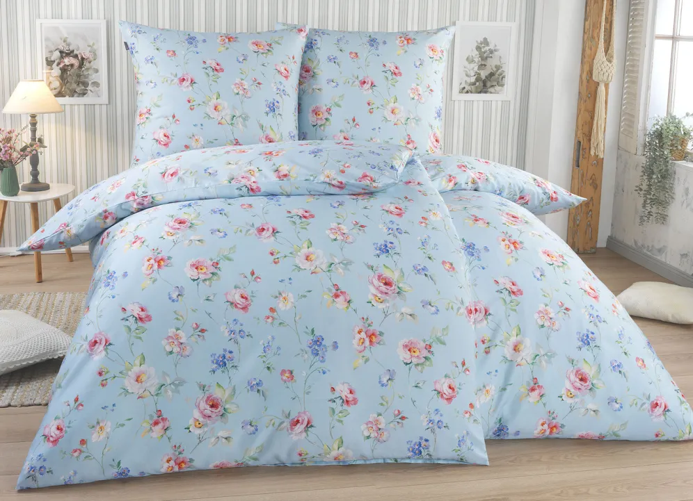 Bunte Blüten verleihen dieser Bettwäsche-Garnitur von „irisette” eine wunderbar leichte Optik. Mit praktischem Reißverschluss. Qualität: Mako-Satin aus 100% Baumwolle. Waschbar bis 60 °C und trocknergeeignet