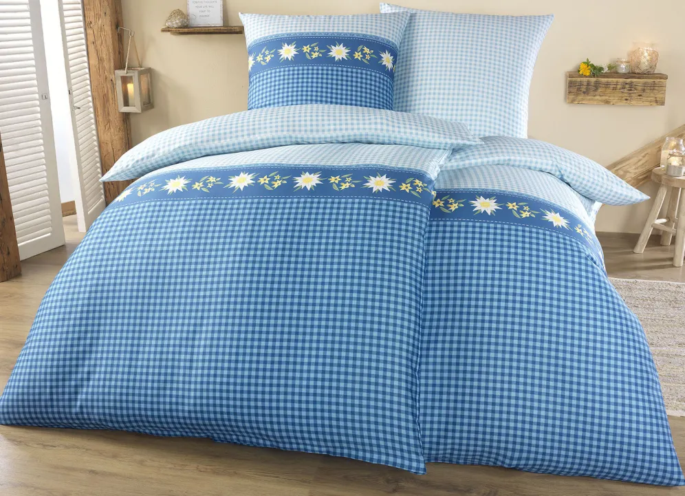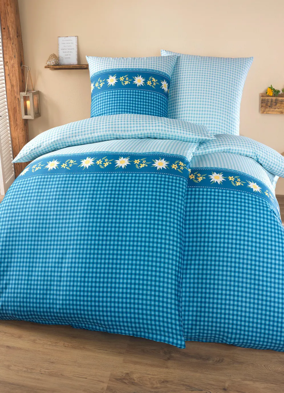 Diese Bettwäsche-Garnitur von „bierbaum“ bringt mit der perfekt harmonierenden Kombination aus Edelweißen und Karos den gemütlichen Landhaus-Stil in Ihr Schlafzimmer . Mit praktischem Reißverschluss.