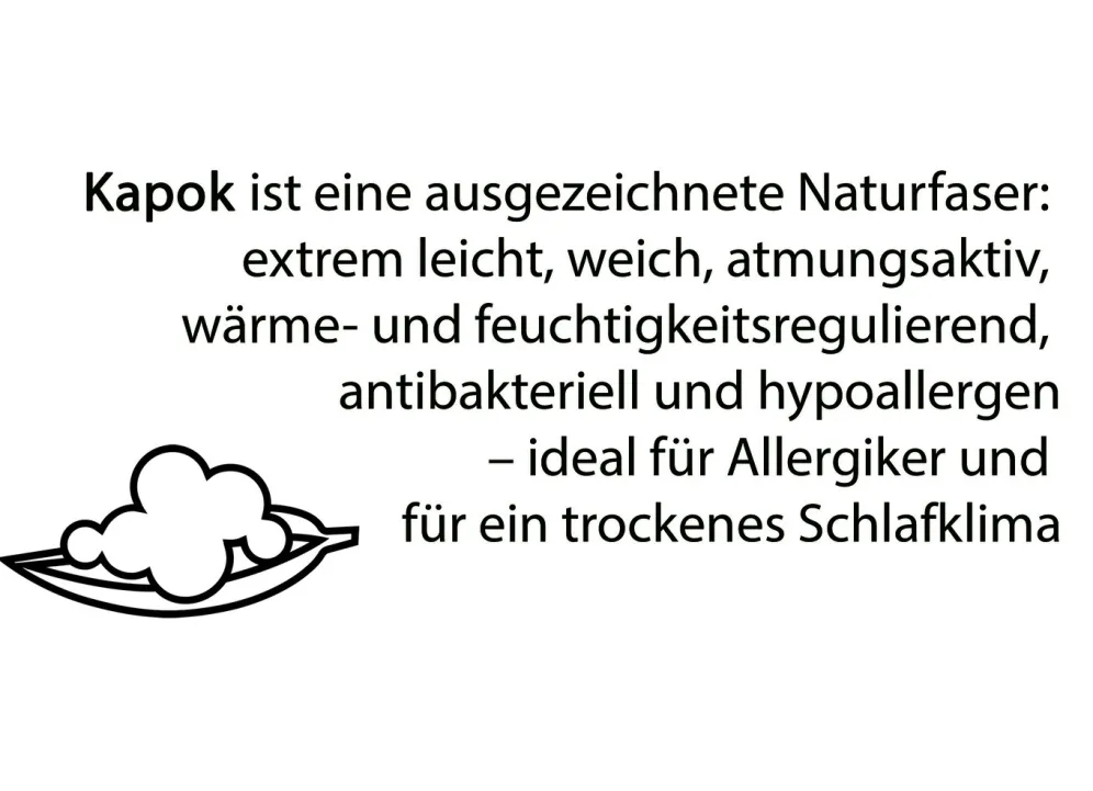 - Kapok-Fasern hemmen das Wachstum von Milben, Pilzen und Bakterien
