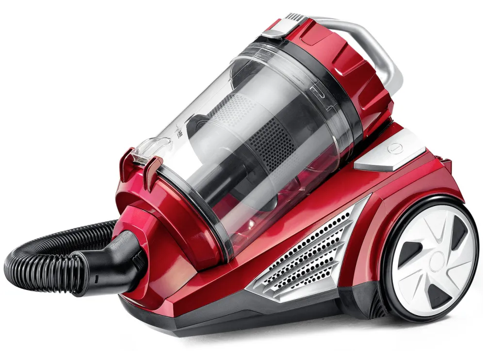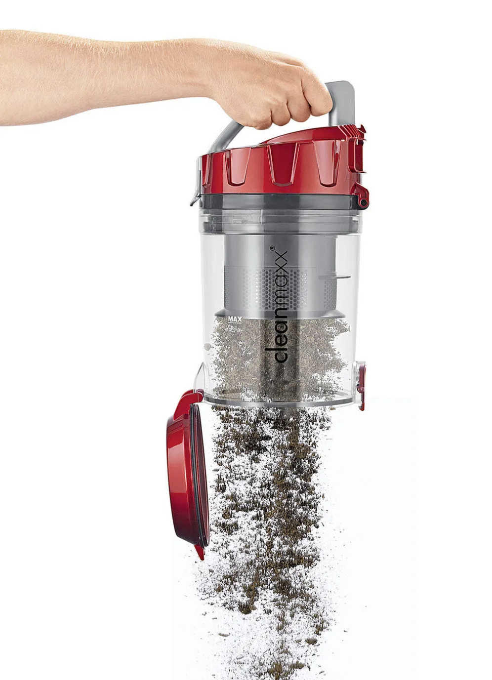 Beutelloser Zyklon-Bodenstaubsauger inkl. HEPA-Filter in Rot.