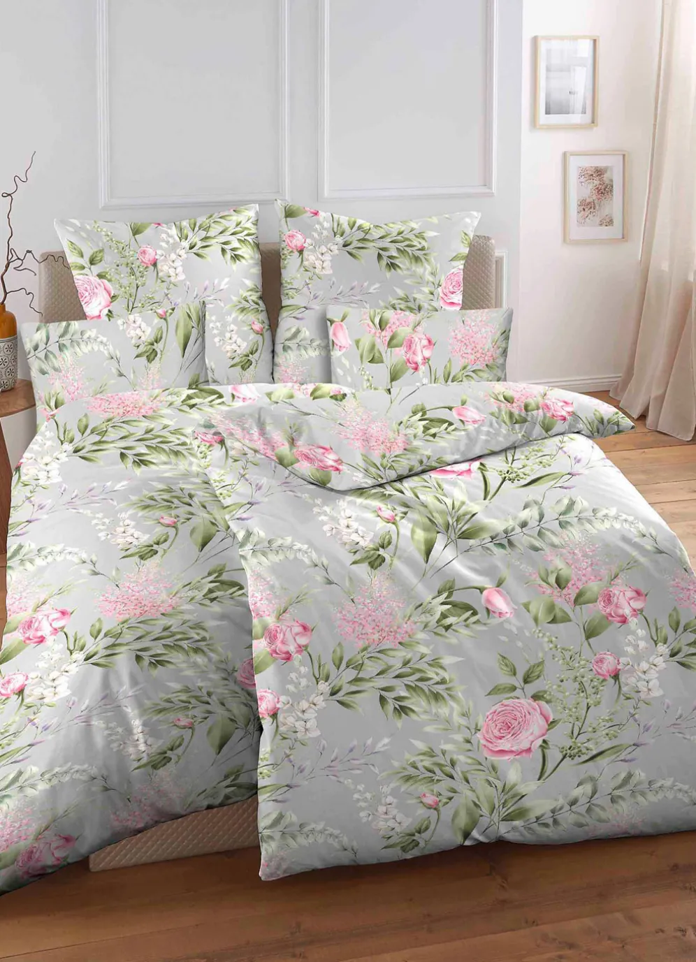 Biberna Bettwäsche-Garnitur in Renforcé-Qualität in Größe 111 (40/80 cm + 135/200 cm) und in Grau-Bunt.