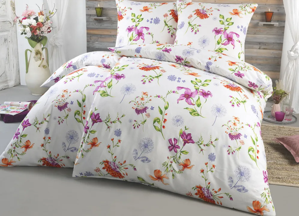 Mit dieser hochwertigen Bettwäsche-Garnitur von „bierbaum“ mit traumhaftem Blütendessin werden Sie sich wohlfühlen. Mit Reißverschluss ausgestattet. Qualität: Biber aus 100% Baumwolle. Waschbar bis 60 °C und trocknergeeignet