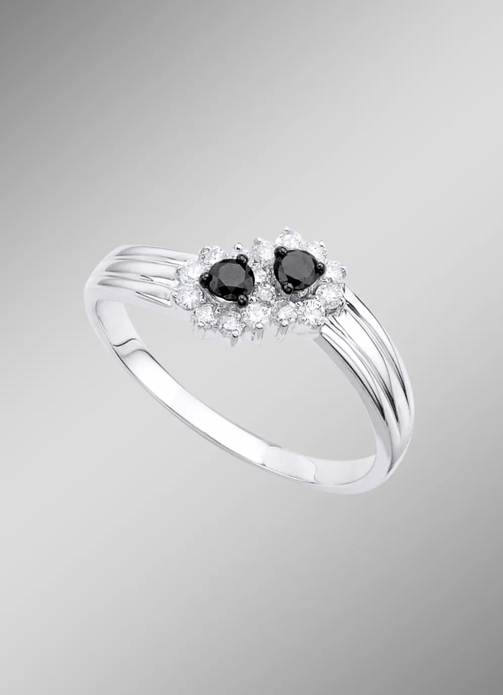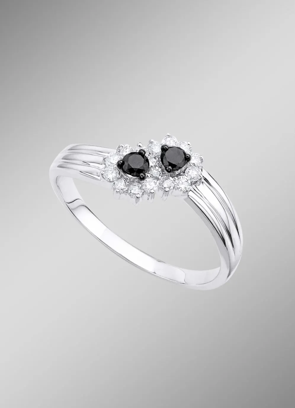 Der Zweiklang aus tiefem Schwarz und strahlendem Weiß macht diesen Diamant-Ring zu etwas Besonderem.