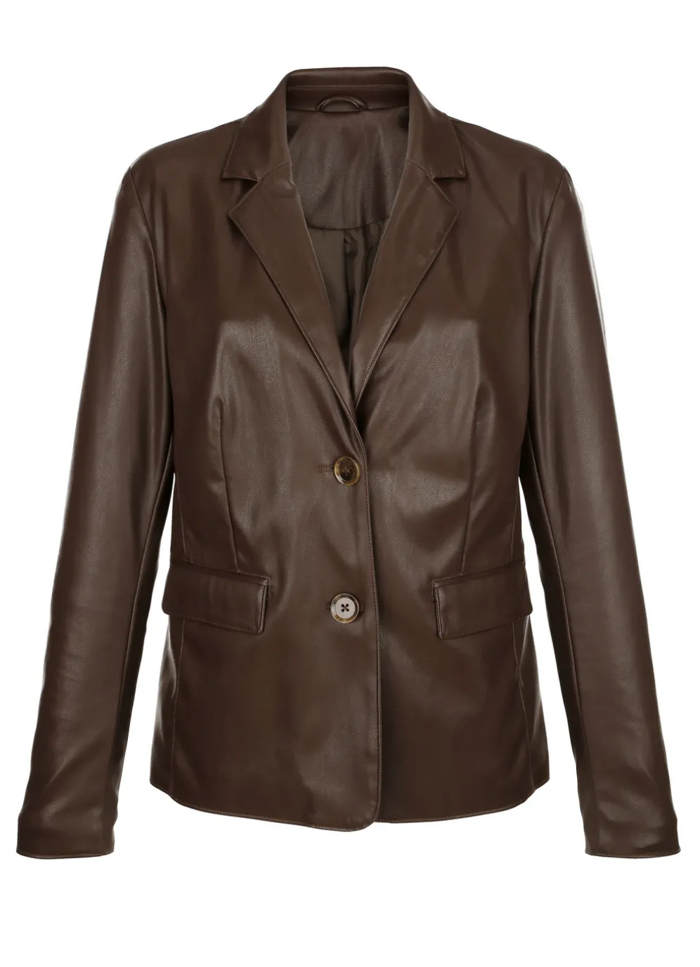 Blazer aus Nappaleder-Imitat in Schokobraun und in Größe 44.