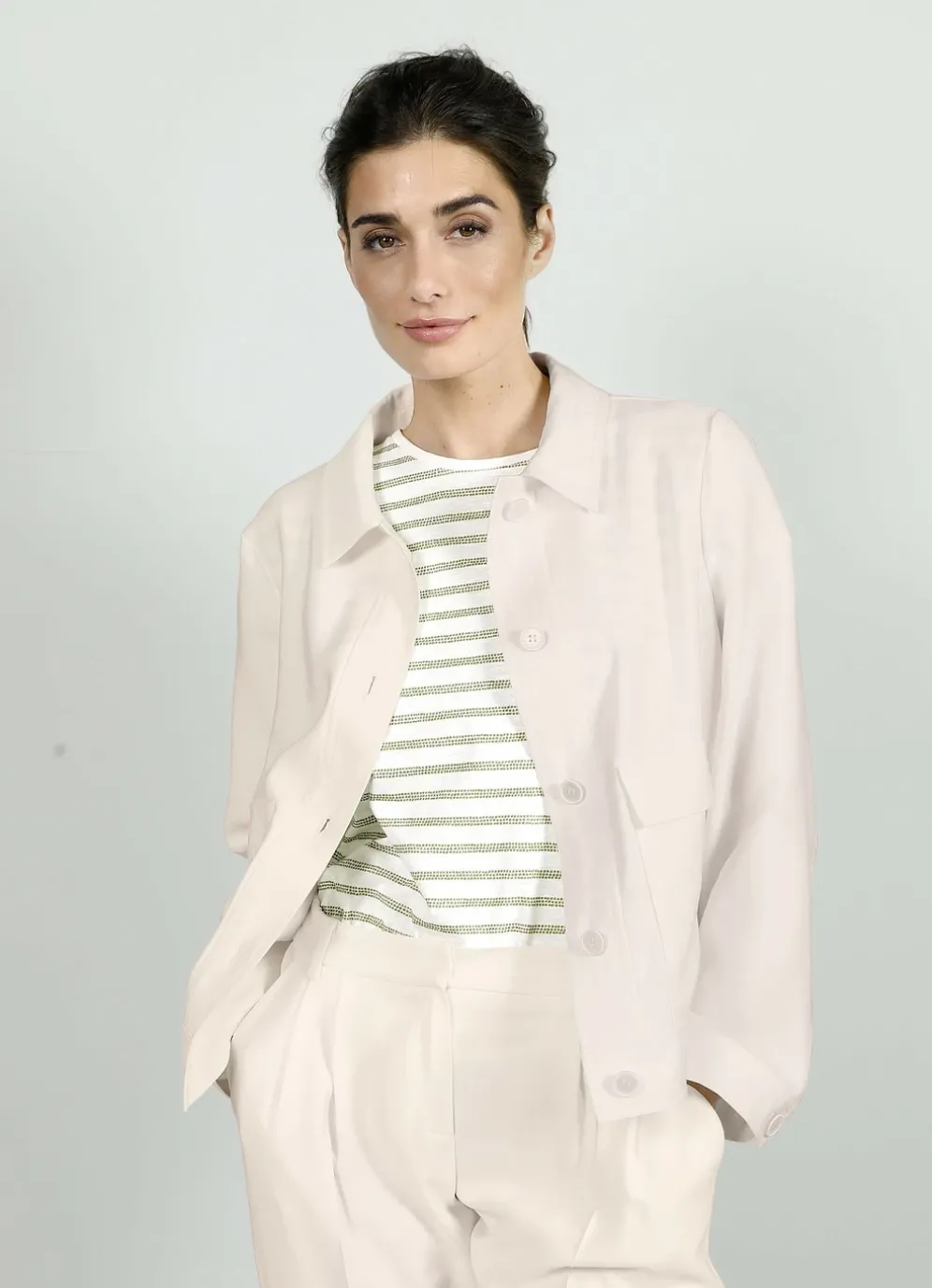 Blazer in Leinen-Optik in Sand und in Größe 40.