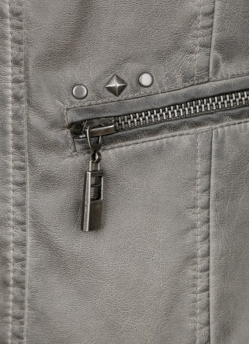 Ganz lässig zeigt sich dieser Lederimitatblazer: durch Reißverschluss hoch schließbarer Stehkragen, Reiß – verschluss an den Taschen und Ärmelabschlüssen sowie dezente Nietenzier. Länge ca. 58 cm.