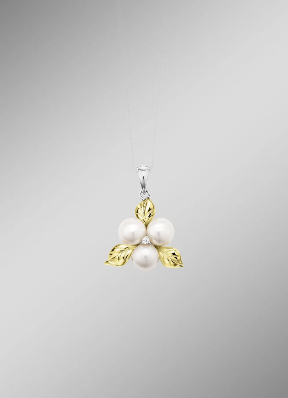 Dieser Anhänger aus Silber 925/- fein im Bicolor-Design besticht durch sein zauberhaftes Blumenmotiv. Die funkelnden synth. Zirkoniasteine und die edlen Muschelkernperlen, eingefasst in einem 24×21 mm großen Anhänger, verleihen diesem Schmuckstück eine einzigartige Eleganz.