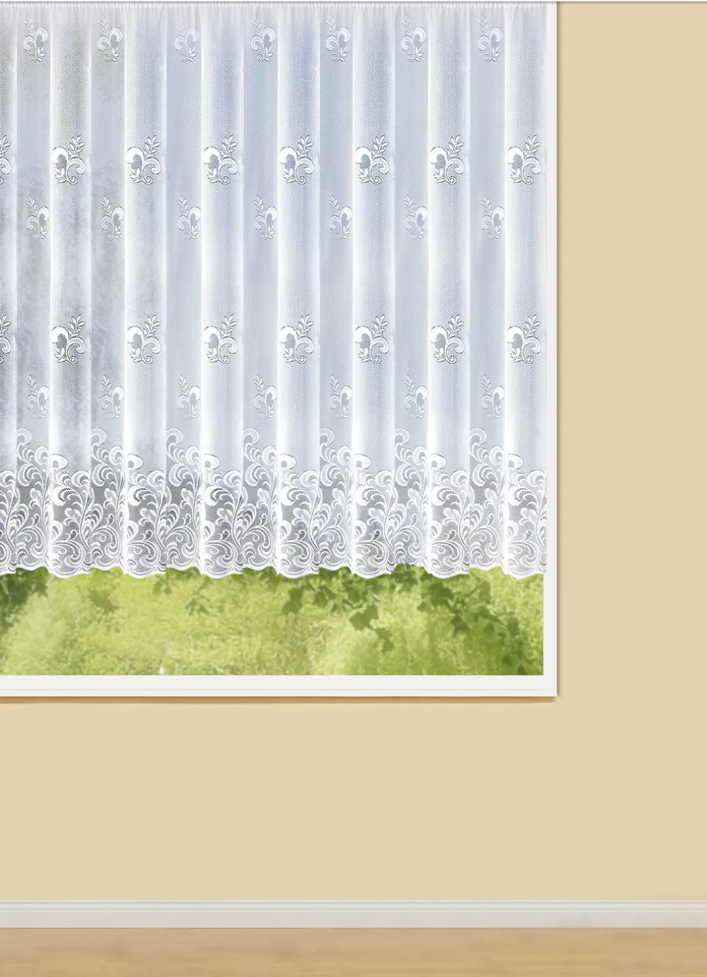 Dieser Blumenfenster-Store mit praktischem Universalschienenband sorgt für ein behagliches Ambiente in Ihrem Zuhause. Mit gebogten Abschlüssen. Die Qualität: Jacquard aus 100% Polyester