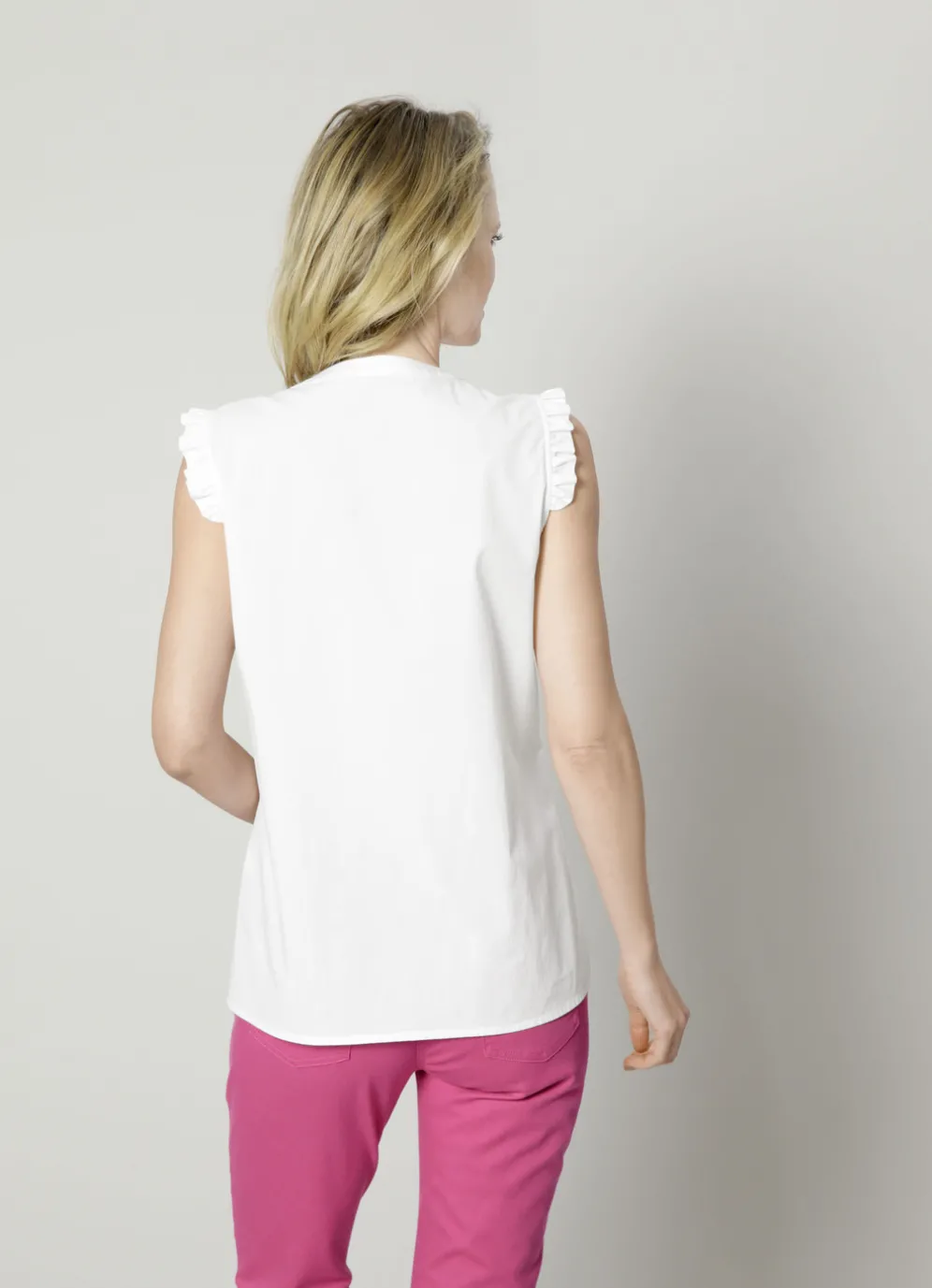 Bluse mit Rüschen in Weiss und in Größe 38.