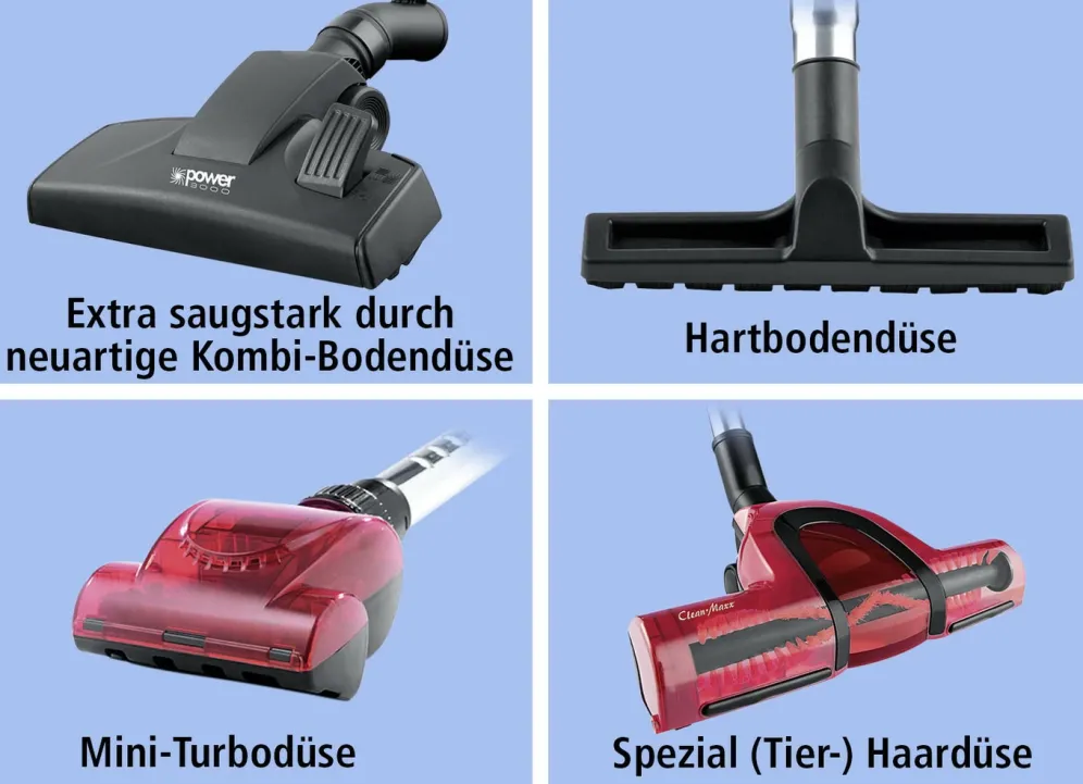 - Inkl. Hartbodendüse, Mini-Turbodüse und Tierhaardüse mit rotierender Bürstenwalze