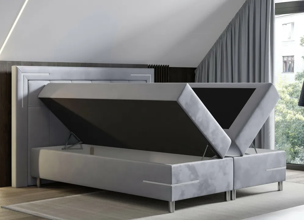 Boxspringbett mit LED-Beleuchtung und Topper