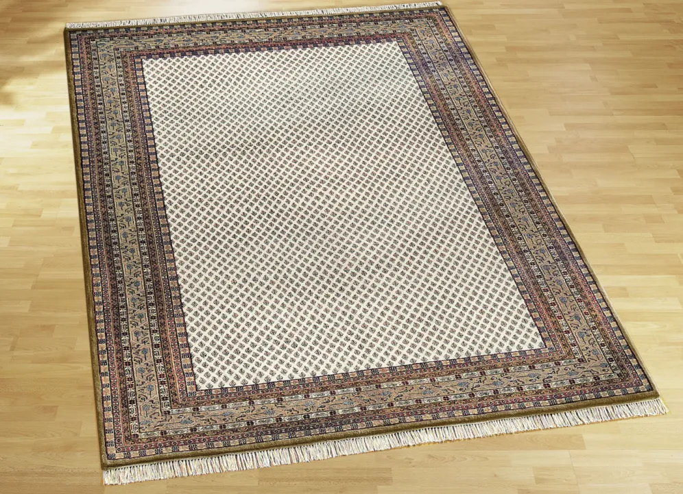 Klassischer, handgeknüpfter Orient-Teppich aus Indien, mit dem berühmten Mir-i-boteh-Muster. Florhöhe 20 mm Qualität: Dichter Flor aus 100% Schurwolle, mit ca. 76.000 Knoten pro m2