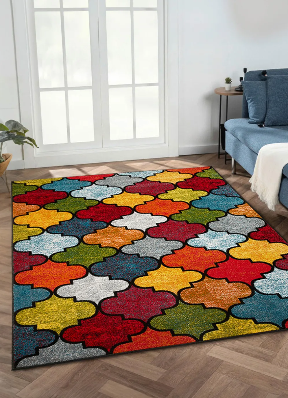 Diese bunten Brücken und Teppiche setzen dekorative Akzente in Ihrem Wohnraum! Sie stechen durch ihr wunderschönes, buntes und abstraktes Muster hervor. Gesamthöhe: 8,5 mm. Qualität: 100% Polypropylen. Für Fussbodenheizung geeignet.