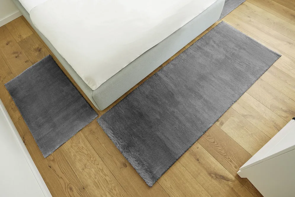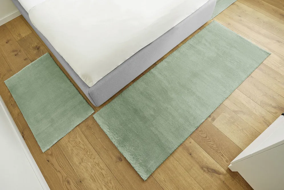 Strapazierfähig und pflegeleicht. Einzelne Flecken lassen sich mühelos mit einem feuchten Tuch abwischen. Waschbar bis 30 °C. Für die tägliche Reinigung können die Modelle mit einem Staubsauger oder einem Saugroboter gepflegt werden. Mit rutschhemmend beschichteter Rückseite. Die Qualität: 100% Polyester.