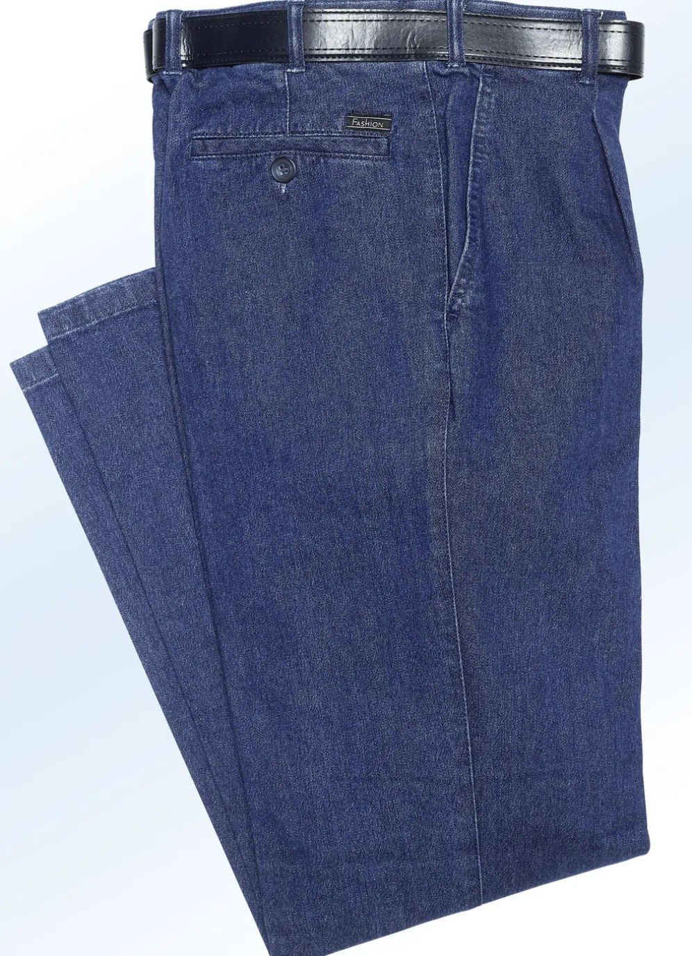 Bügelfreie Jeans mit Gürtel in 3 Farben in Jeansblau und in Größe 25.