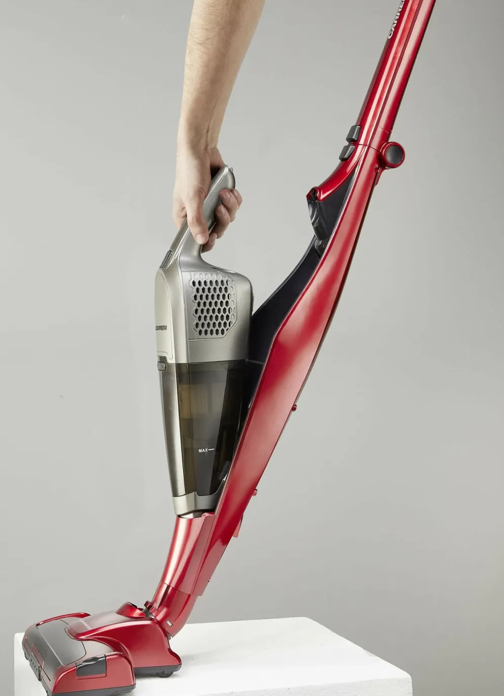 Carrera High-Performance Akku-Stielsauger in Rot.