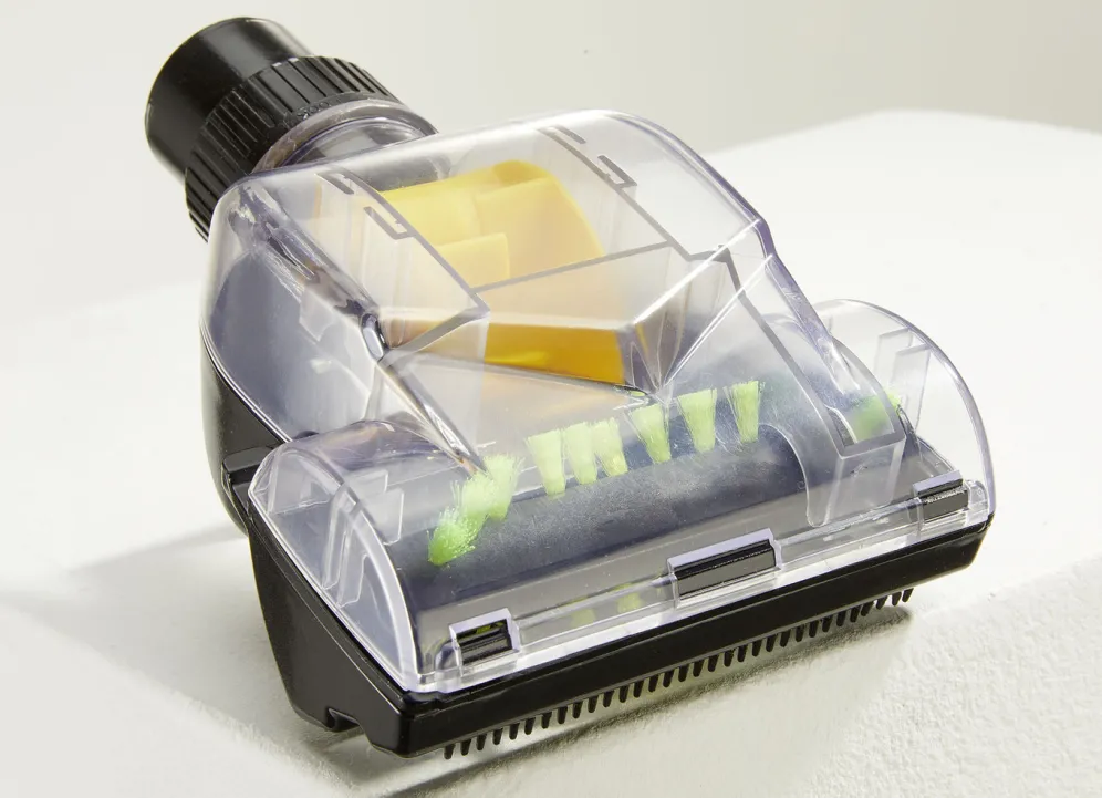 - Mit umschaltbarer Bodendüse, Mini-Turbodüse sowie Polster- und Fugendüse