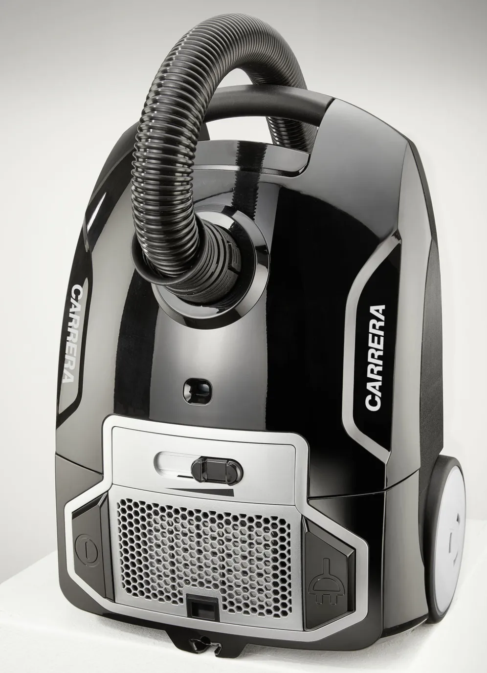 Carrera-Bodenstaubsauger: Besonders kraftvoll, wendig und angenehm leise. Mit Motorschutzfilter und HEPA-Filter – ideal für Allergiker: die eingesaugte Luft wird zu fast 100% von Staub, Pollen, Milbenallergenen, Schimmel und Sporen befreit. Hochleistungsmotor für lang anhaltend hohe Saugkraft. Ergonomischer Soft-Griff und Teleskoprohr. 3 Liter Staubbeutelvolumen. Mit Staubfüllanzeige. Bodenschonung durch gummierte Laufrollen. Praktischer Tragegriff und Parkhilfe. Mit umschaltbarer Bodendüse, Mini-Turbodüse sowie Polster- und Fugendüse. Kabellänge 4,5 m. 800 Watt mit Saugkraftregler