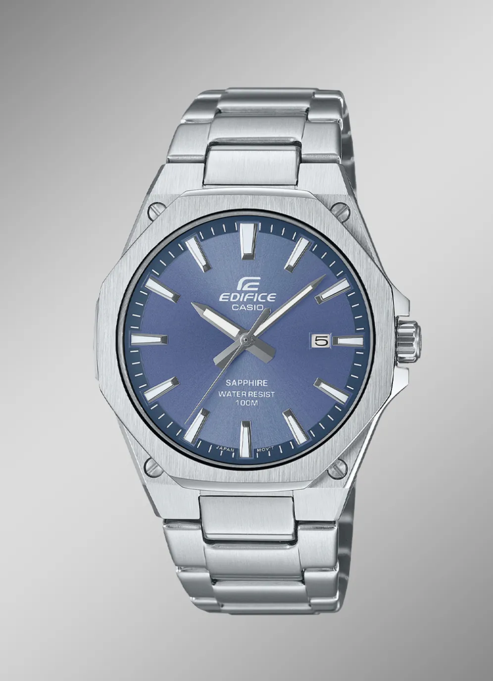 Gehäusedurchmesser DM: 40 mm 10 bar Edelstahlbandgehäuse Saphirglas Faltschliesse Datum Casio Edifice Classic EFR-S108D-2AVUEF Diese klassische Casio Edifice Herrenuhr ist zu jedem Outfit kombinierbar. Die Herrenuhr hat ein Edelstahlgehäuse, eine Edelstahlband mit Faltschließe und Saphirglas. Sie hat eine Datums-Anzeige und die floureszierende Zeiger und Indexe leuchten im Dunkeln, wenn dies zuvor einer Lichtquelle ausgesetzt waren. Die Quartz-Herrenuhr ist 10 bar wasserdicht und hat einen Gehäusedurchmesser von 40 mm.